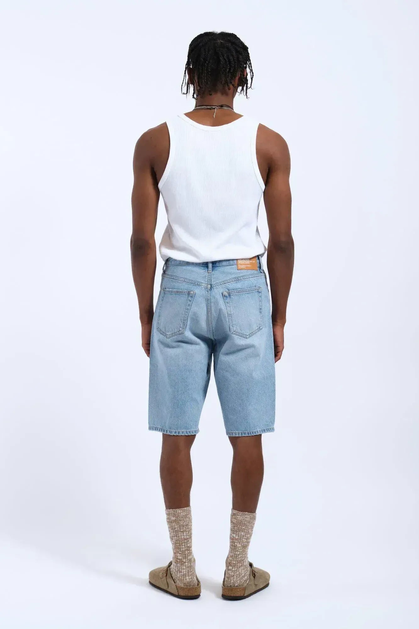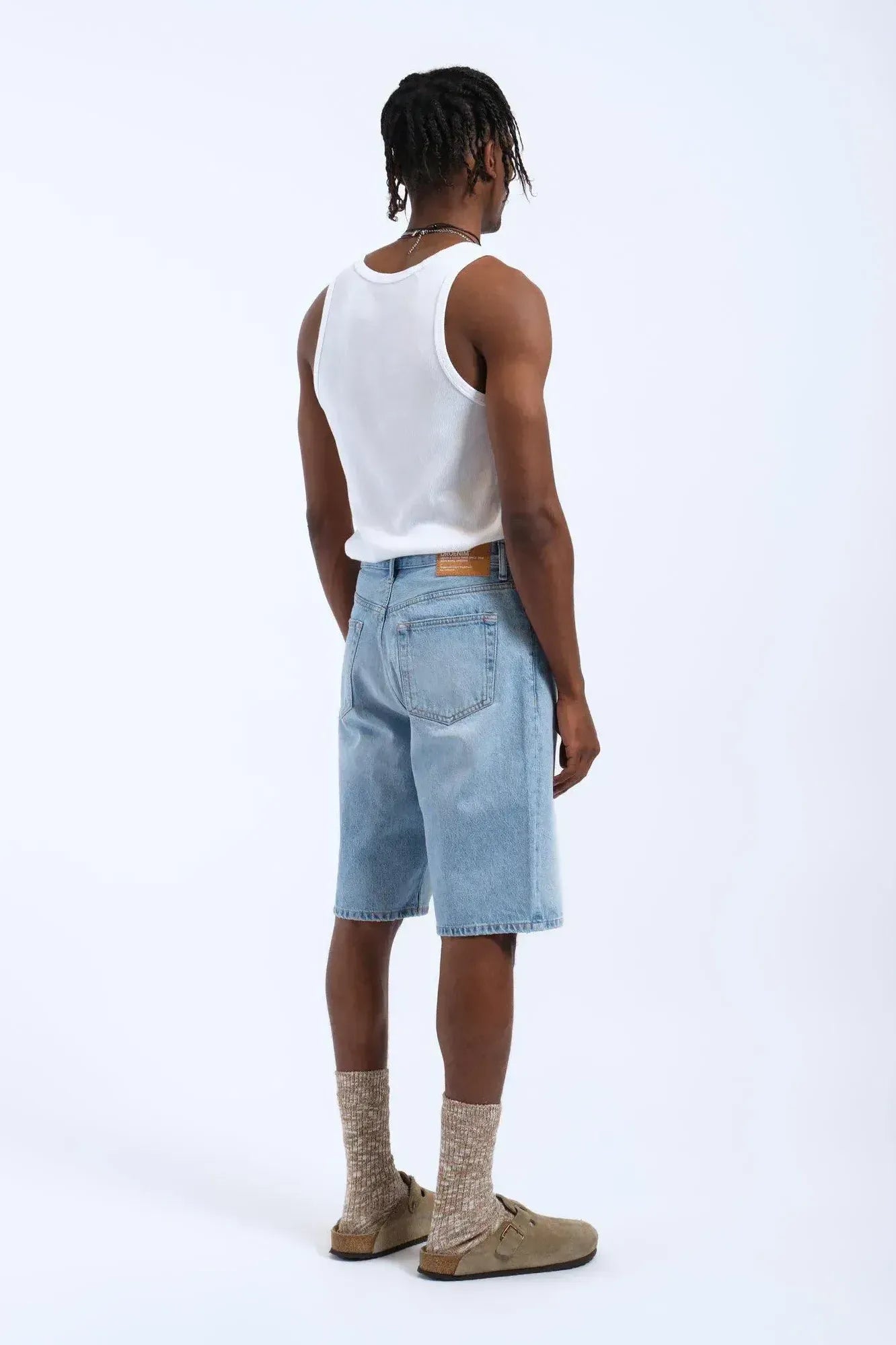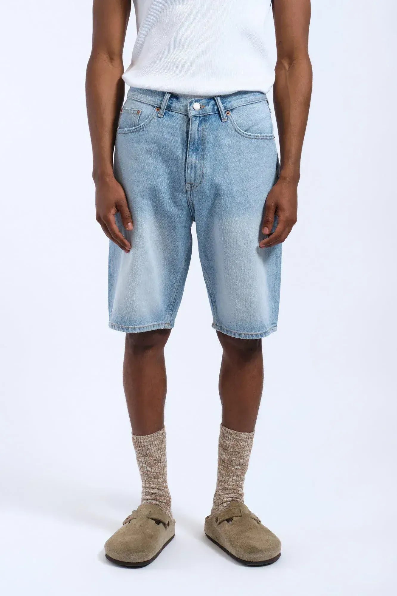 The Omar denim Shorts in Stream Light Fade feature a retro baggy fit, longer length, button closure and classic 5-pocket set-up.