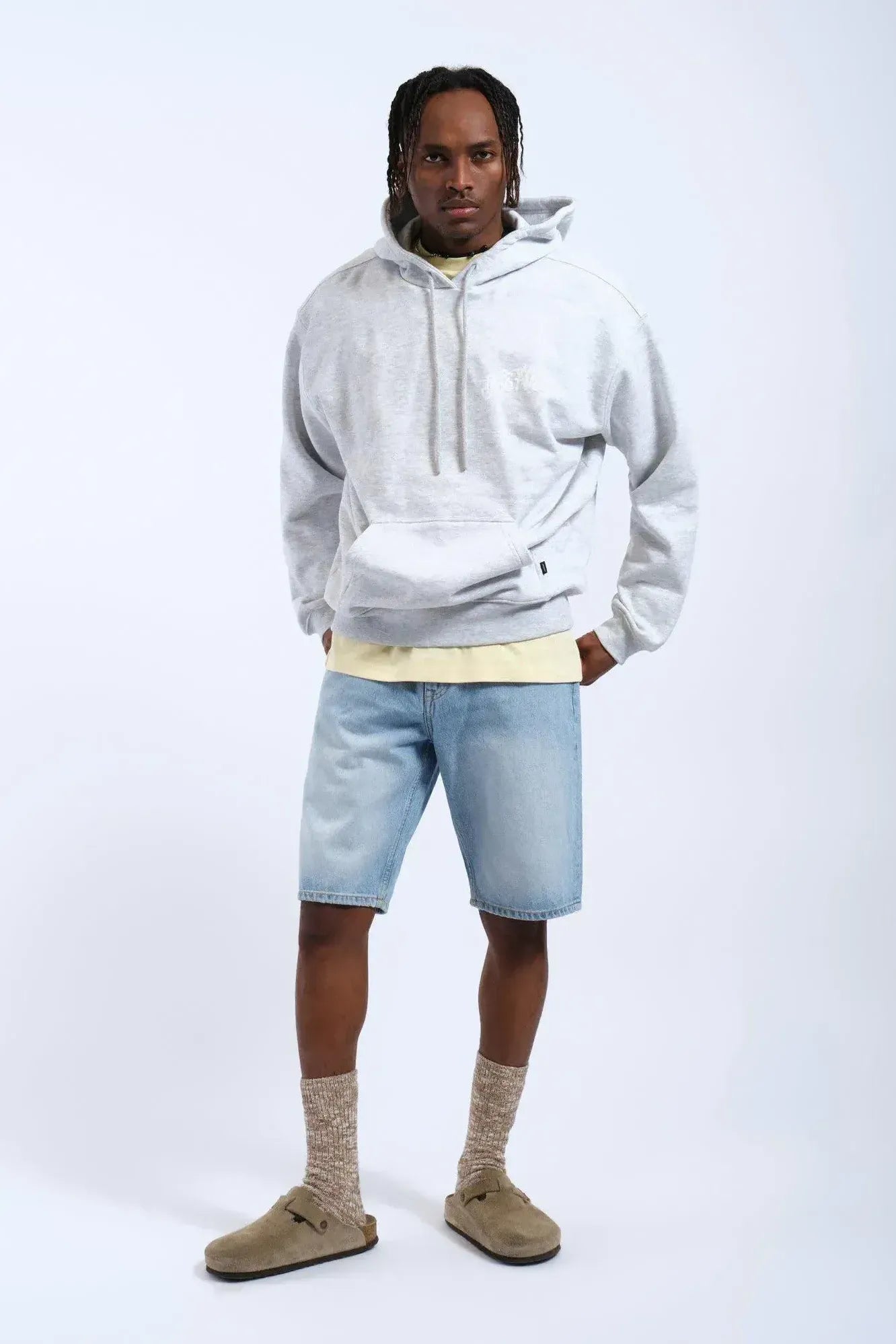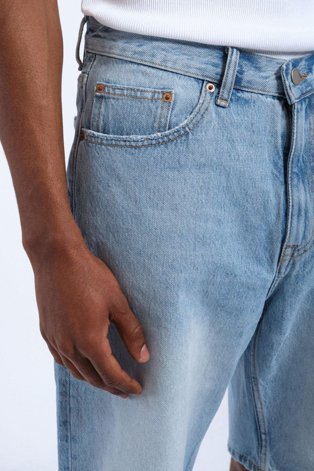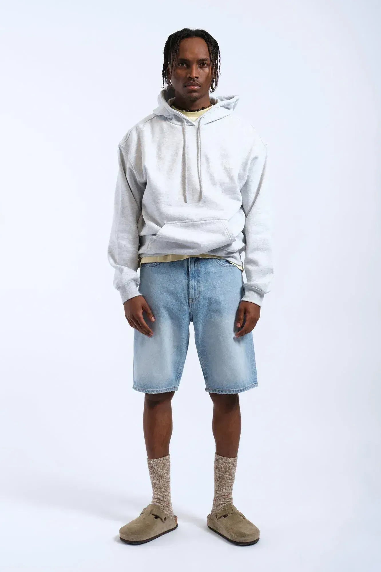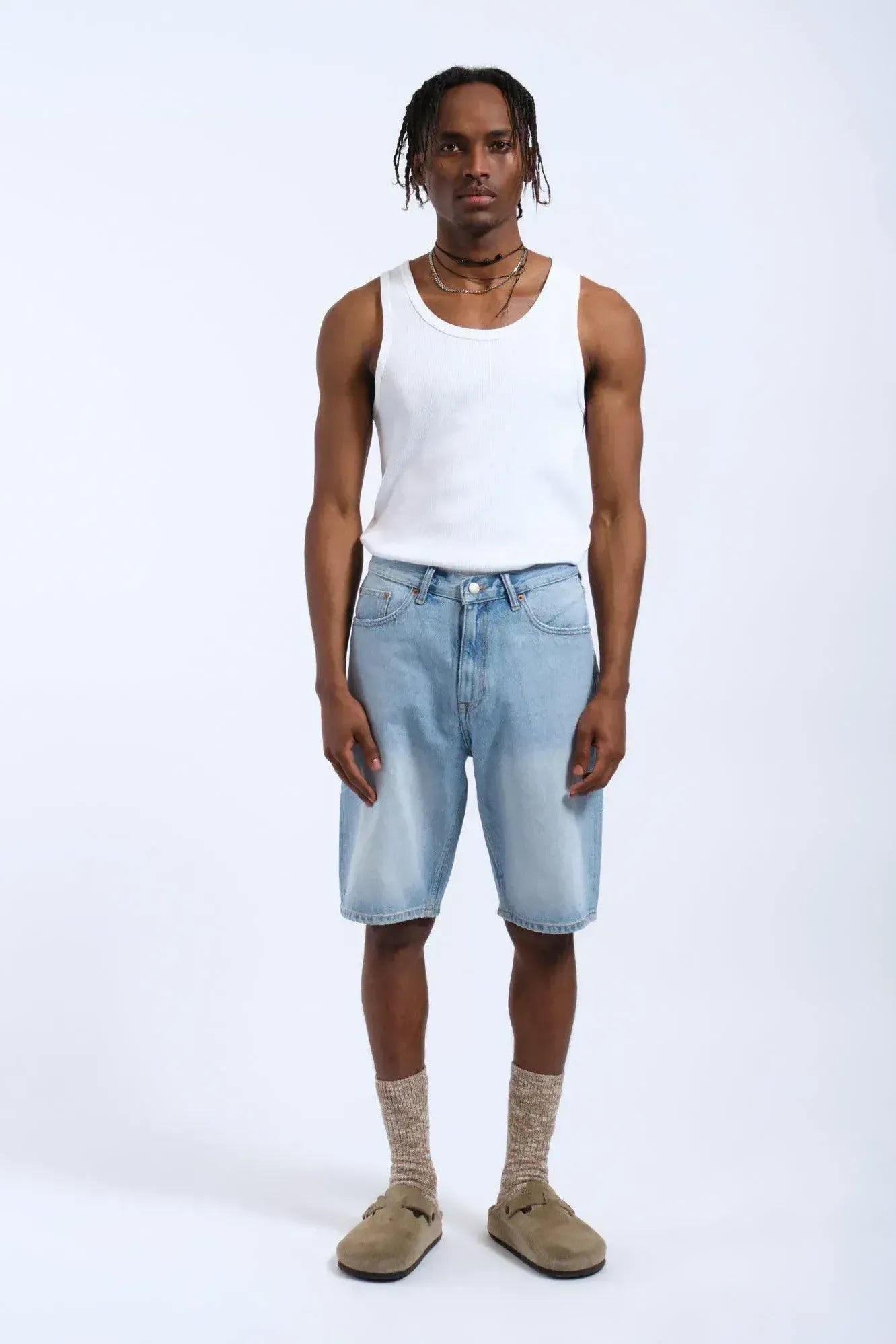 The Omar denim Shorts in Stream Light Fade feature a retro baggy fit, longer length, button closure and classic 5-pocket set-up.