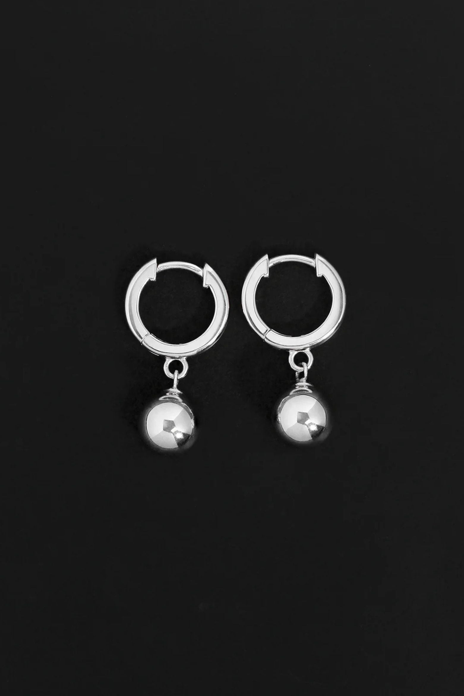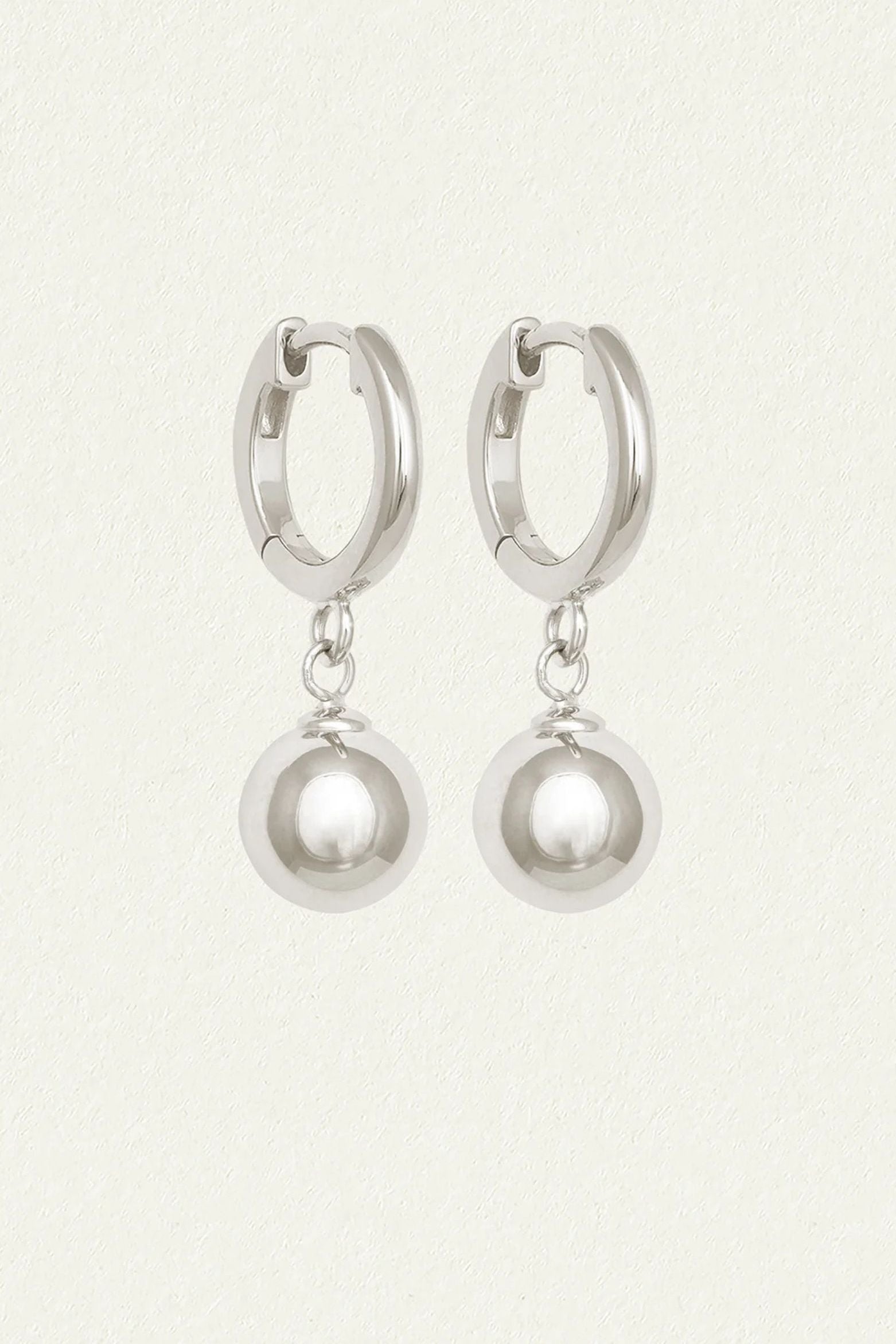 These recycled sterling silver drop earrings feature polished orbs that catch the light with every movement. An evolution of our original Alba Huggies with pearl drops, this design is slightly larger, with a 10mm hoop, offering added versatility.