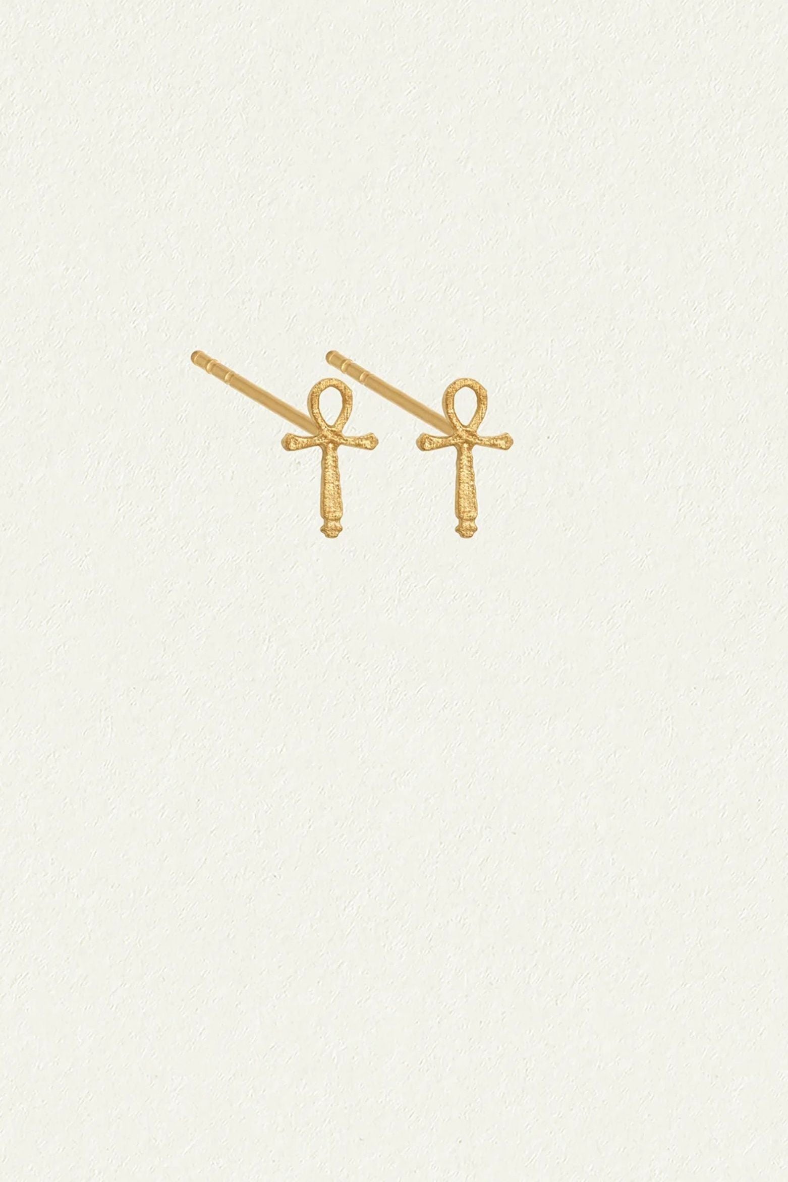 The Cairo Studs are small ankh earrings, crafted from 18k gold vermeil. Known as the Egyptian symbol of life, the ankh represents vitality, protection, and the eternal cycles of existence.