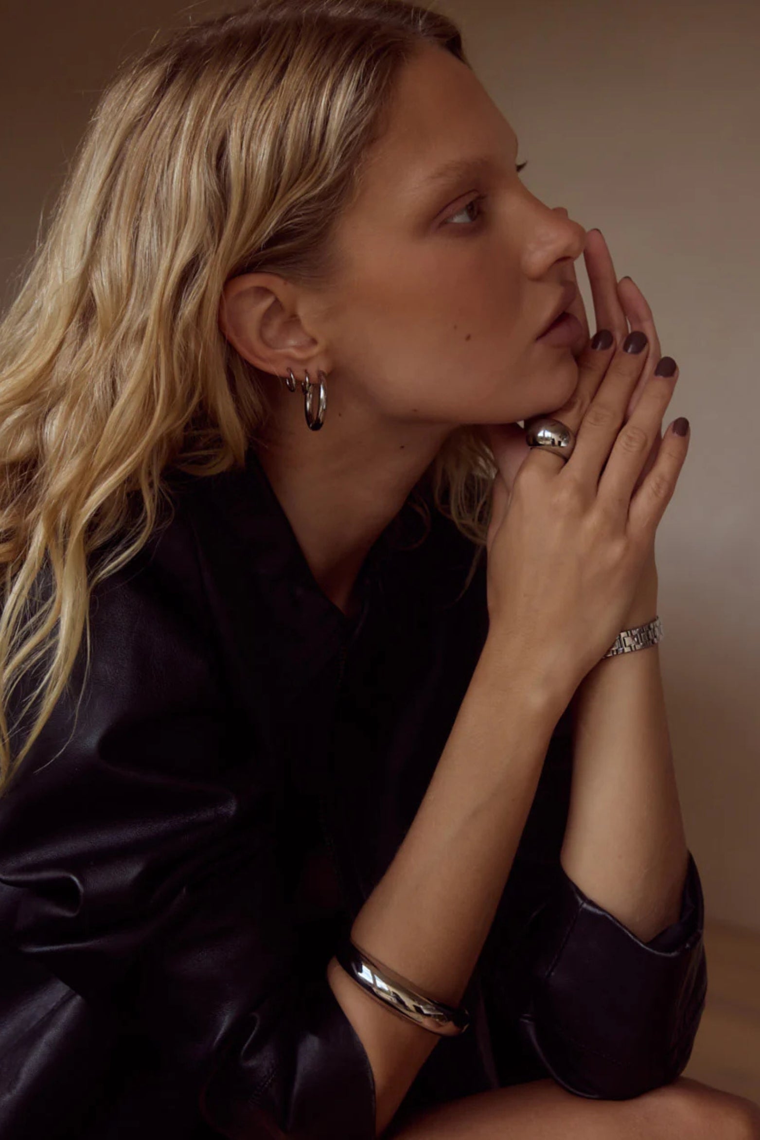 Stay on trend with our Rhode Huggie Earrings in Gold. These Silver Huggies feature a secure huggie closure for a comfortable fit that won't weigh you down. For a complete look, stack them with our matching Rhode and Rosie Huggies.