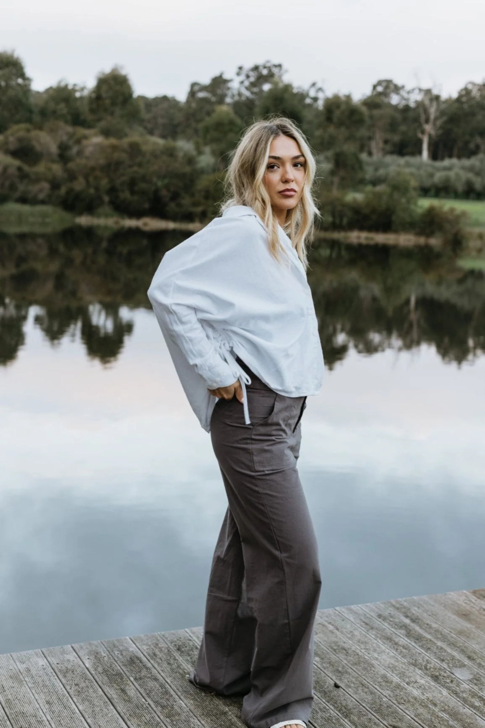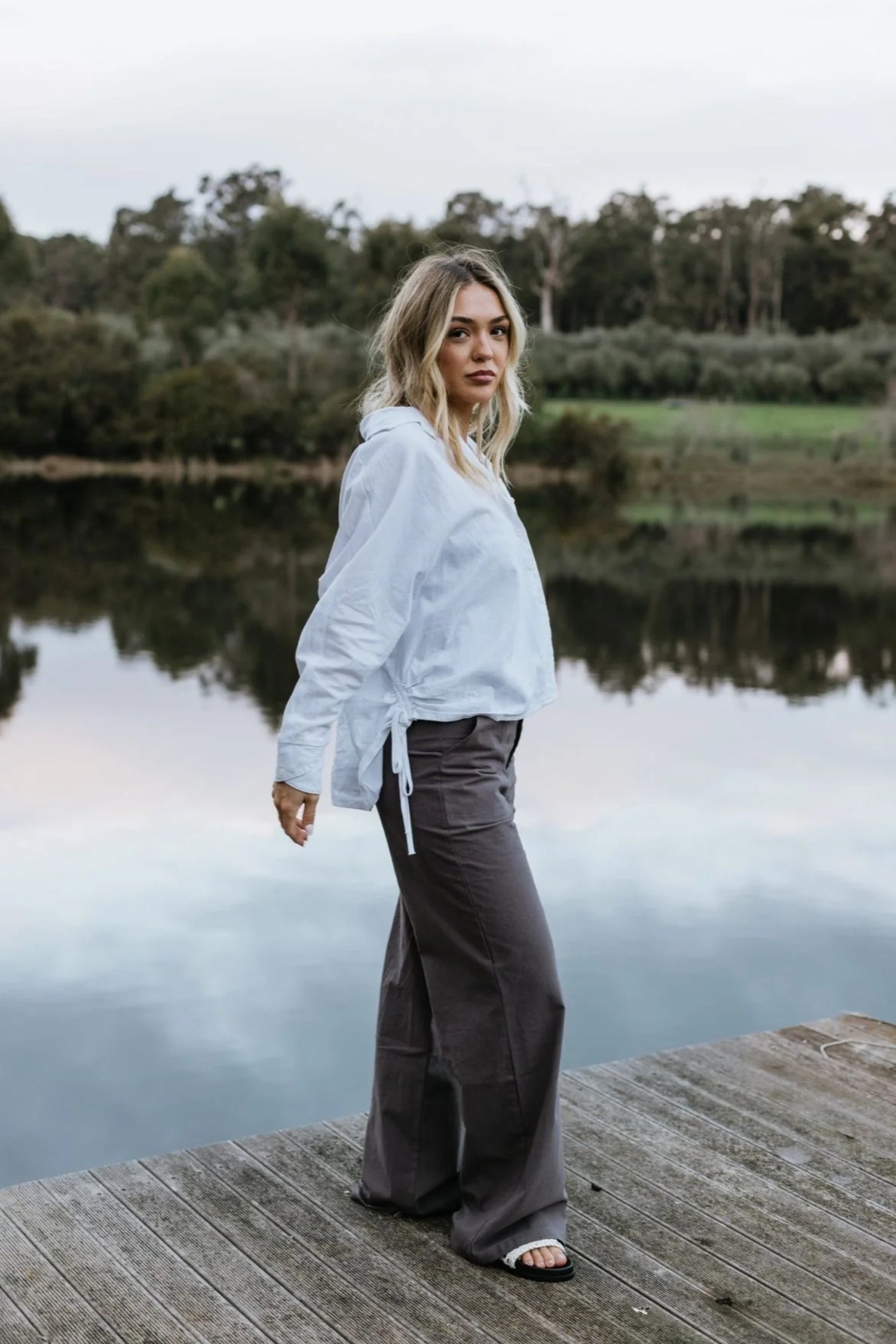 A timeless essential with a modern ease. Crafted from a breathable linen and cotton blend, The Clover Button-Up is designed for effortless dressing year-round. The relaxed silhouette drapes naturally, while the adjustable drawstring sides allow you to customise the shape allowing you to cinch it in for a more defined look or leave it loose for laid back comfort, it’s the kind of piece you’ll reach for time and again.