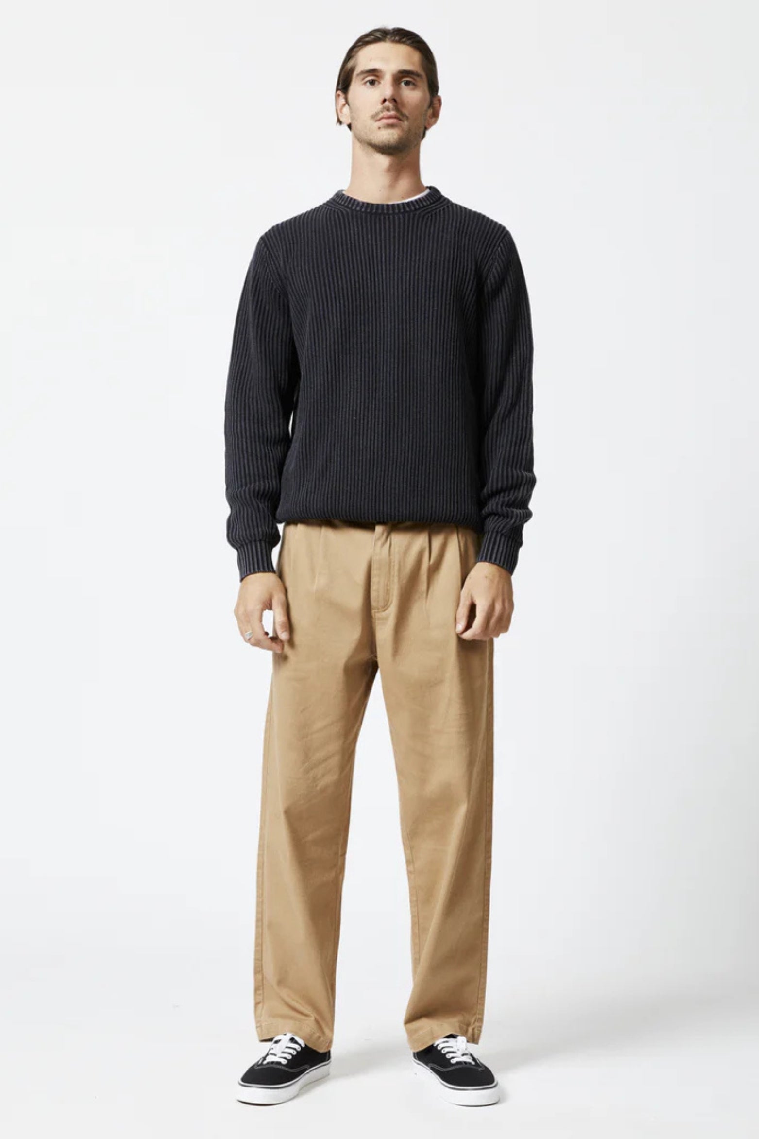 2. Style. Textured garment dyed knit looks great with just about any pant style you choose.