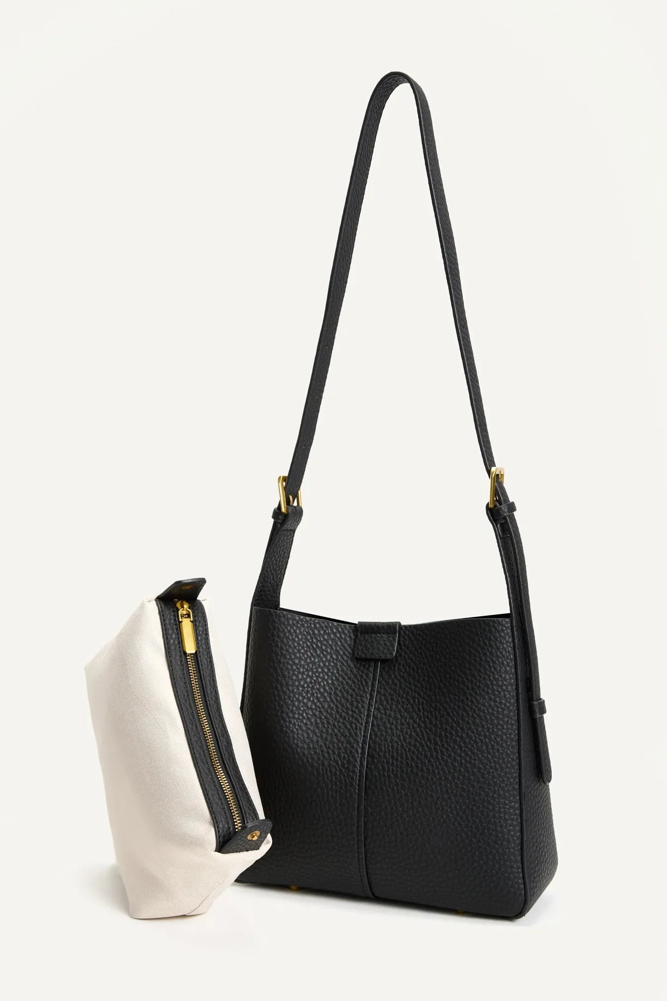 The front seam detail and adjustable double buckle strap add a little personality, while the magnetic button closure and snap in pouch make staying organised feel simple.