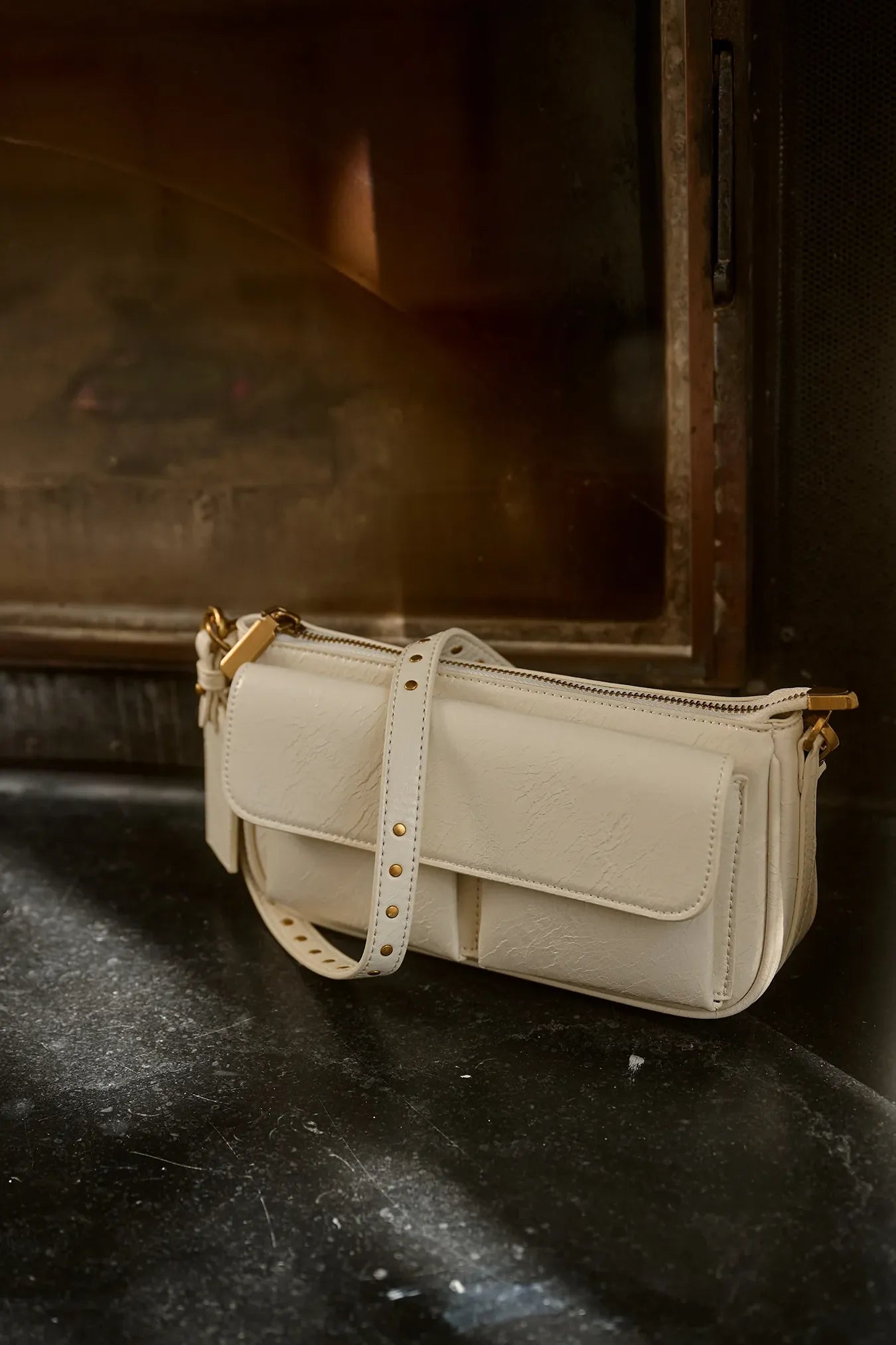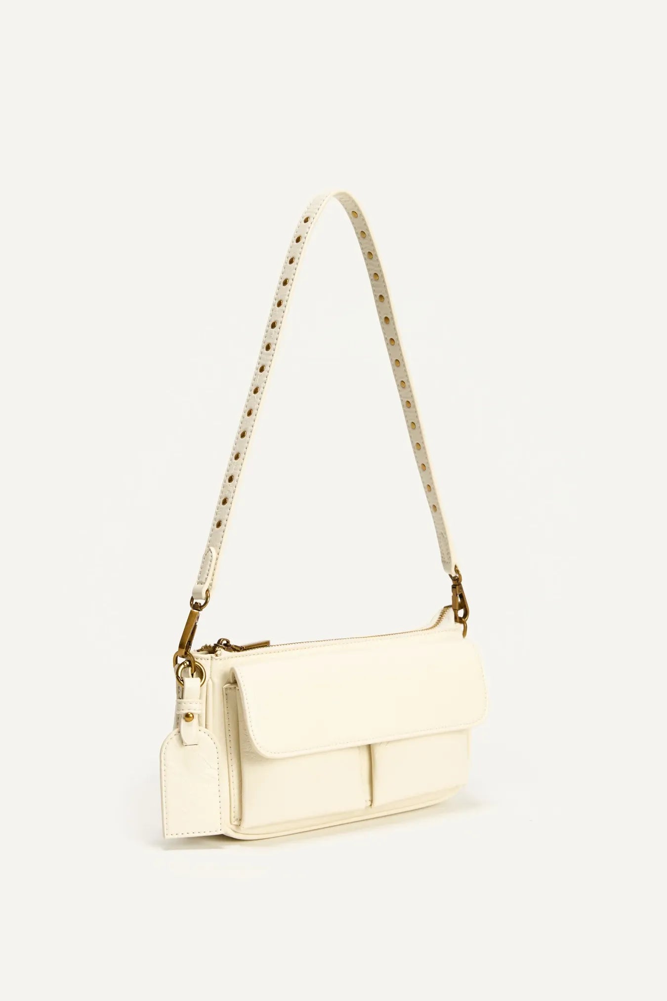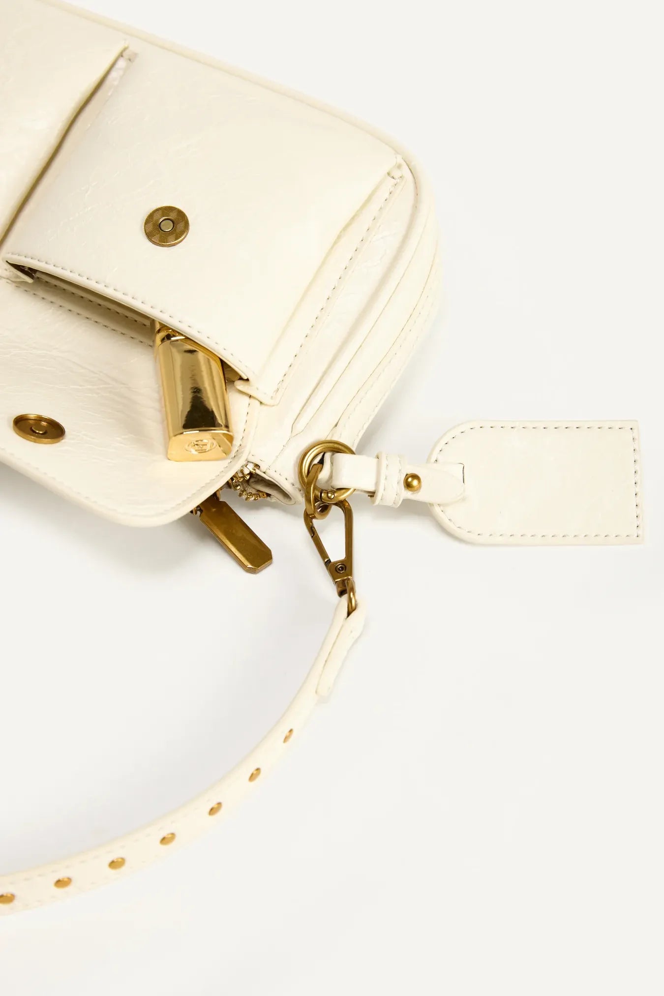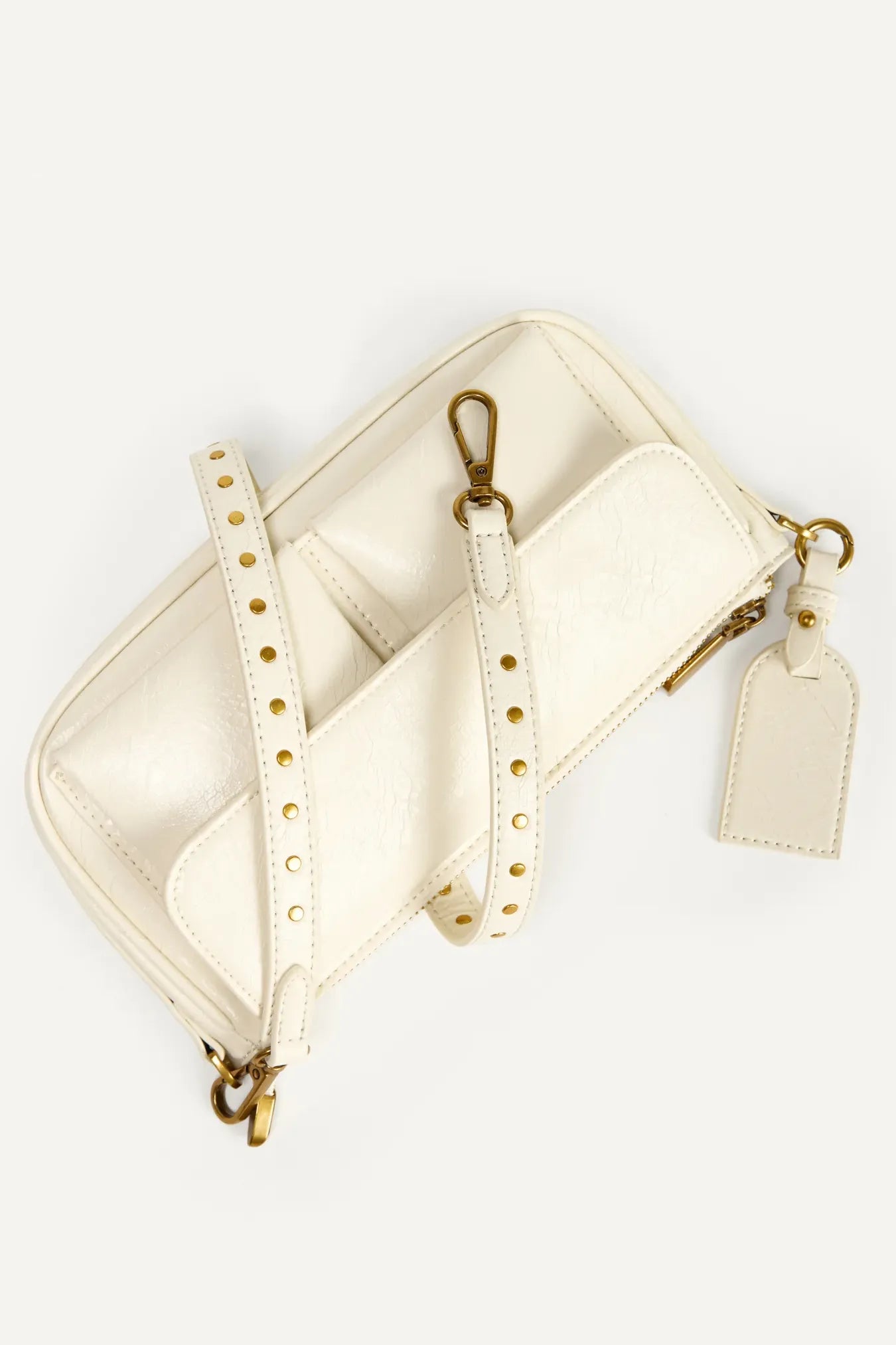 - 2 straps – A handle strap with stud detailing and an additional removable adjustable crossbody strap