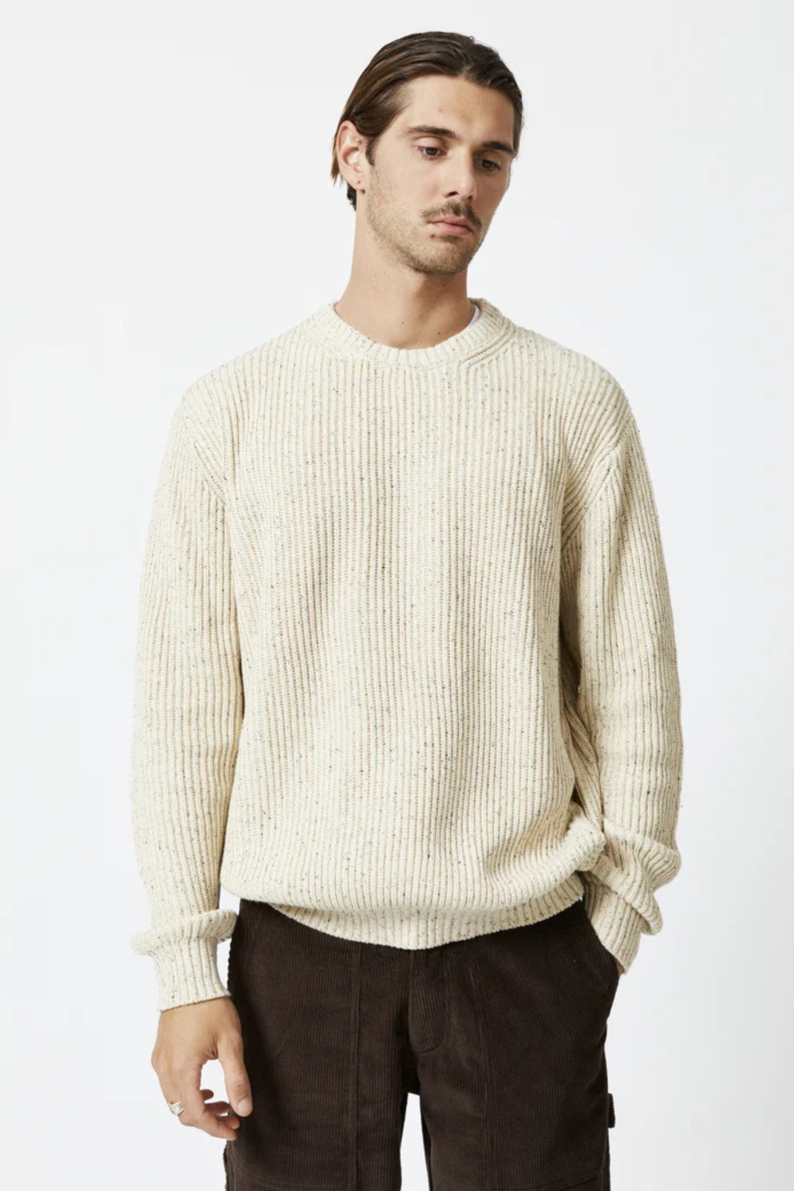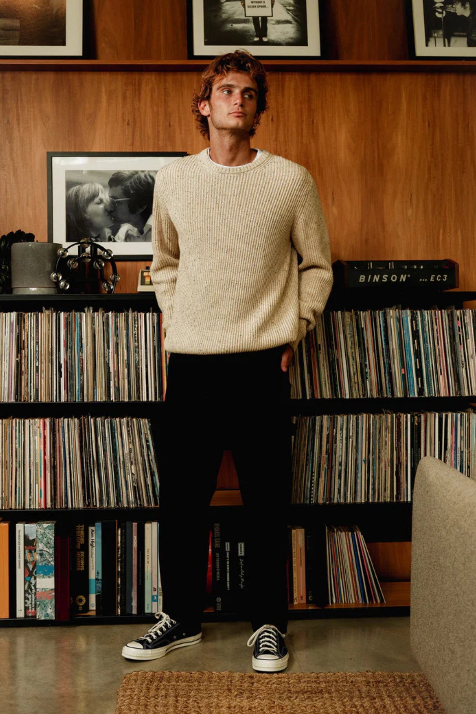 FEATURES: Crew neck, Bobble Knit, Rib Hem & Cuffs, Overdye with Soft Rinse
