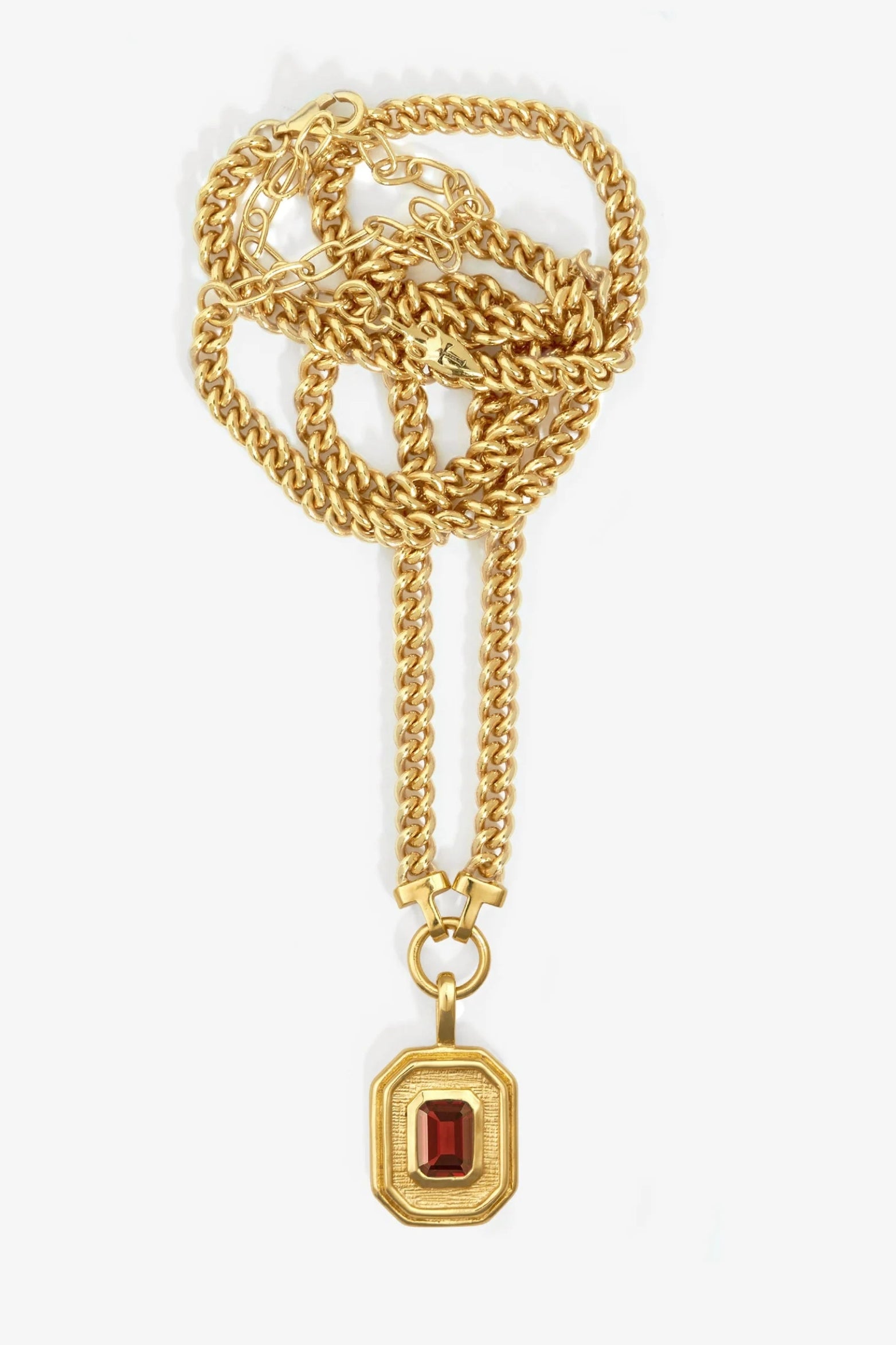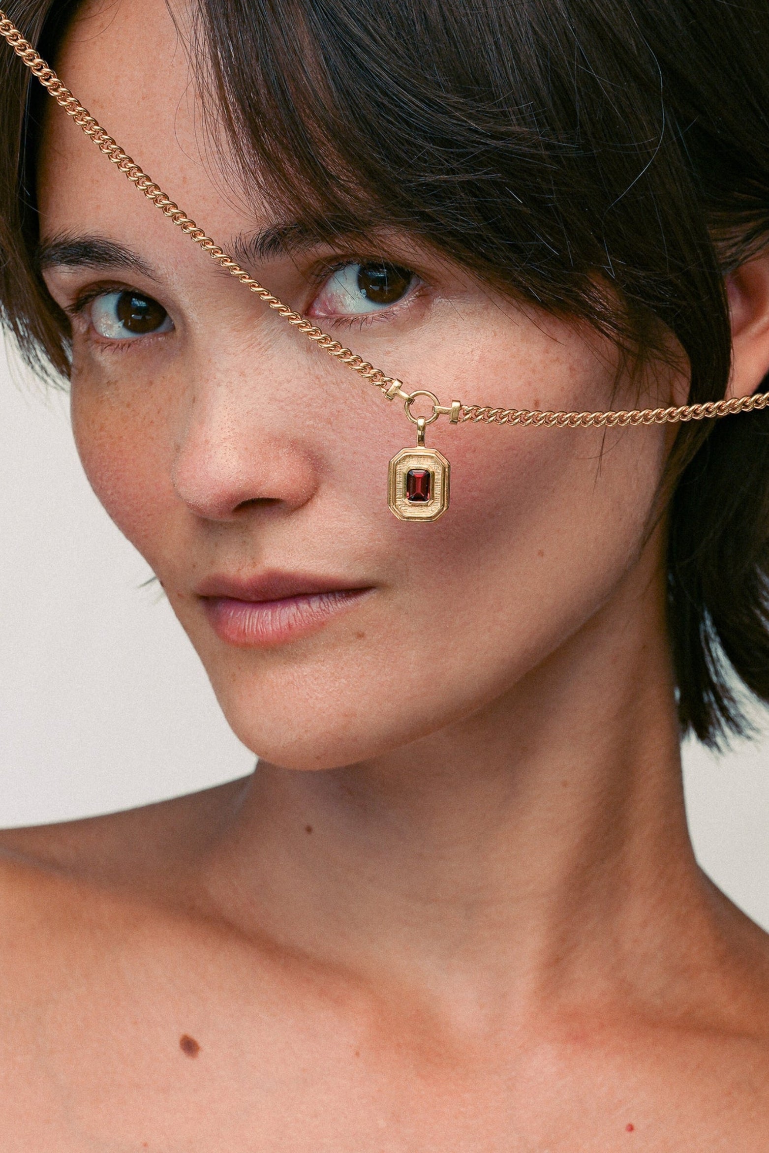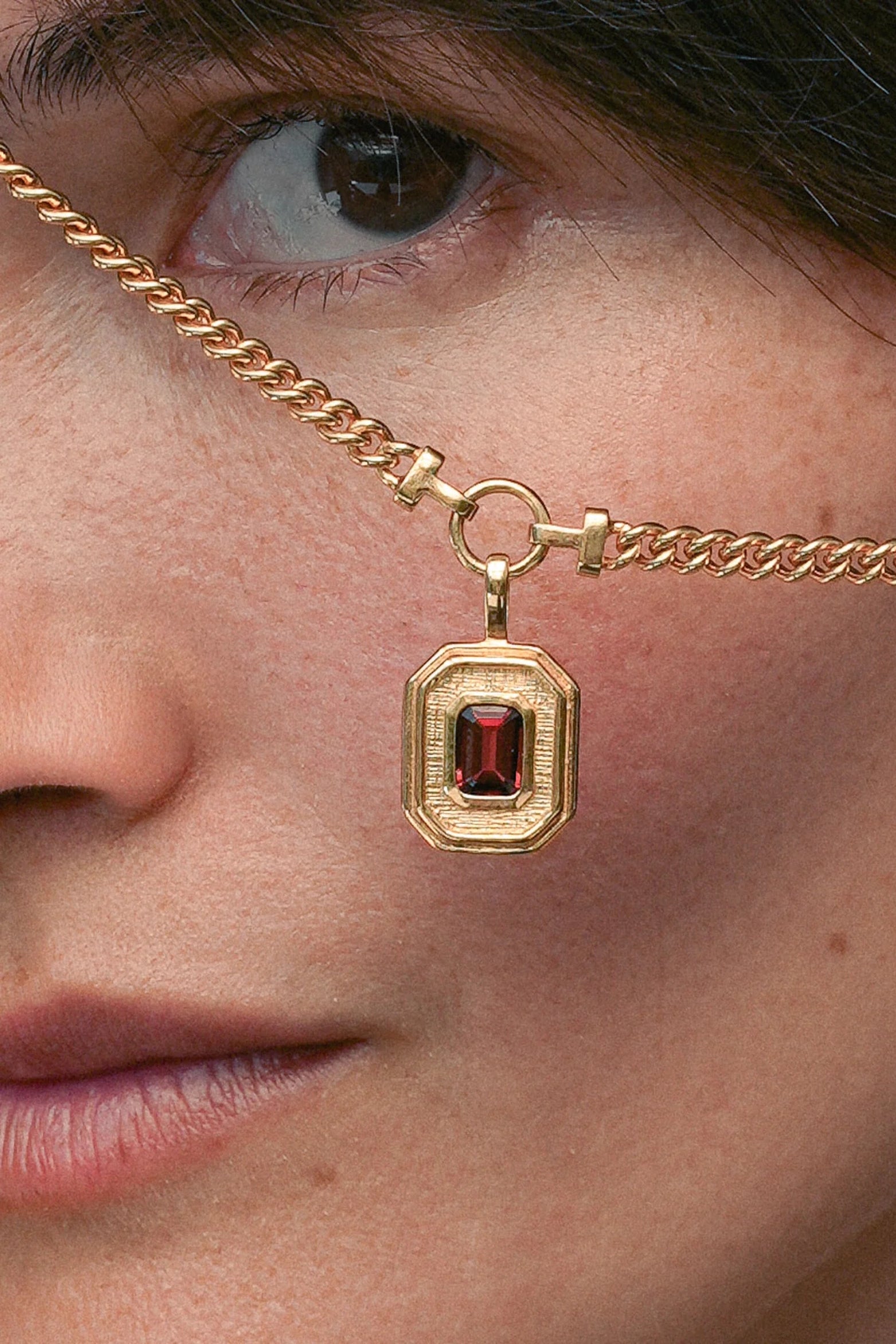 Inspired by an ancient agora, this necklace showcases a majestic emerald-cut garnet, set in a statement pendant.