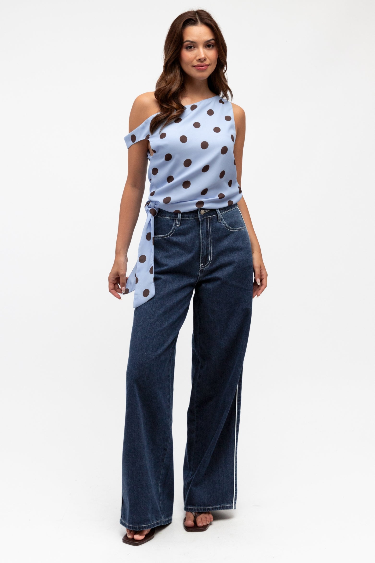 Gracie Tie Polka Top sky Blue - 12 is backordered and will ship as soon as it is back in stock.