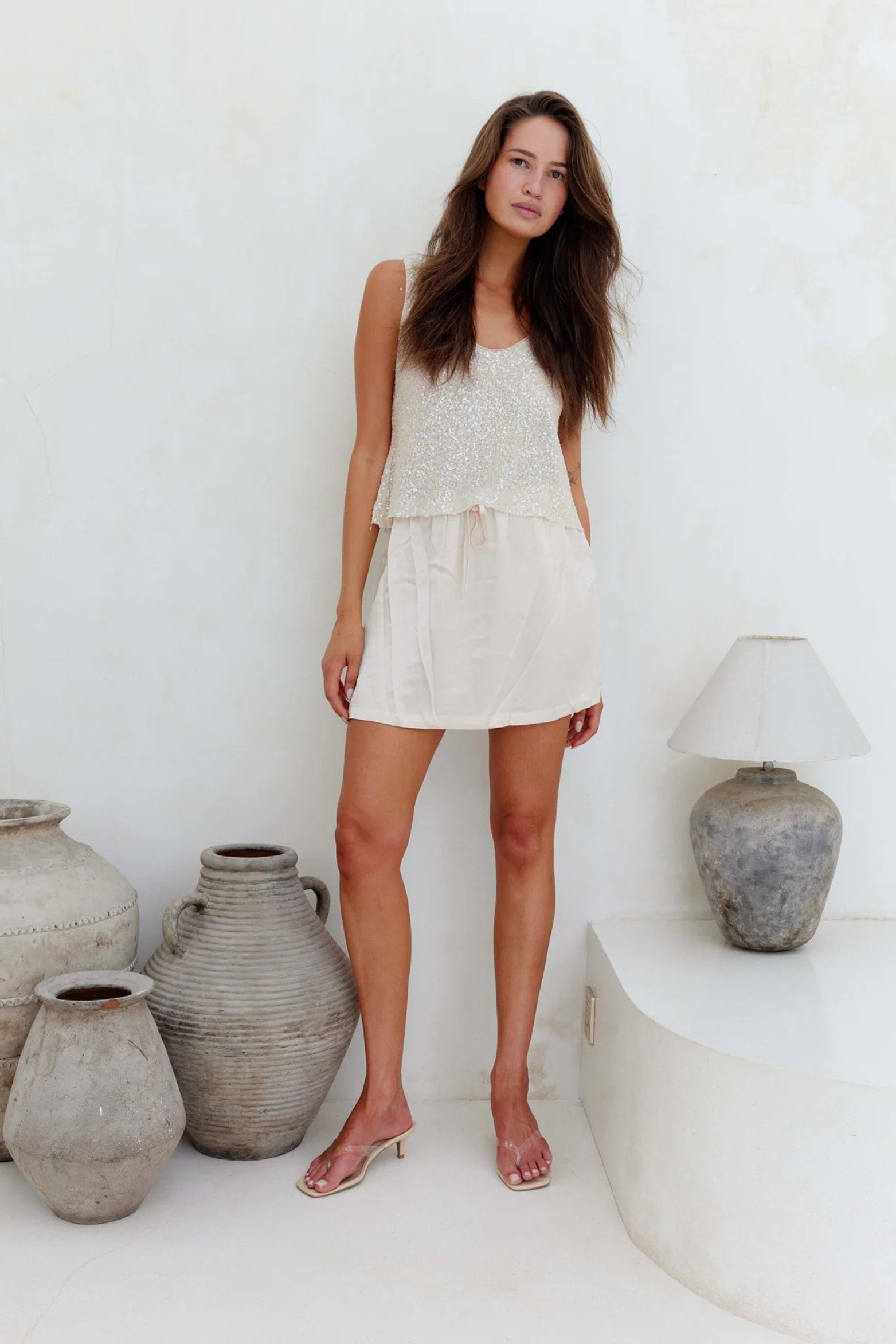Sparkle and shine in the ASTA TOP, a semi-sheer sequined boxy silhouette that's pure fun. The relaxed fit keeps things comfortable while the shimmering sequins steal the spotlight. Whether you're hitting the dance floor or turning heads at brunch, this playful piece delivers instant glamour without trying too hard.