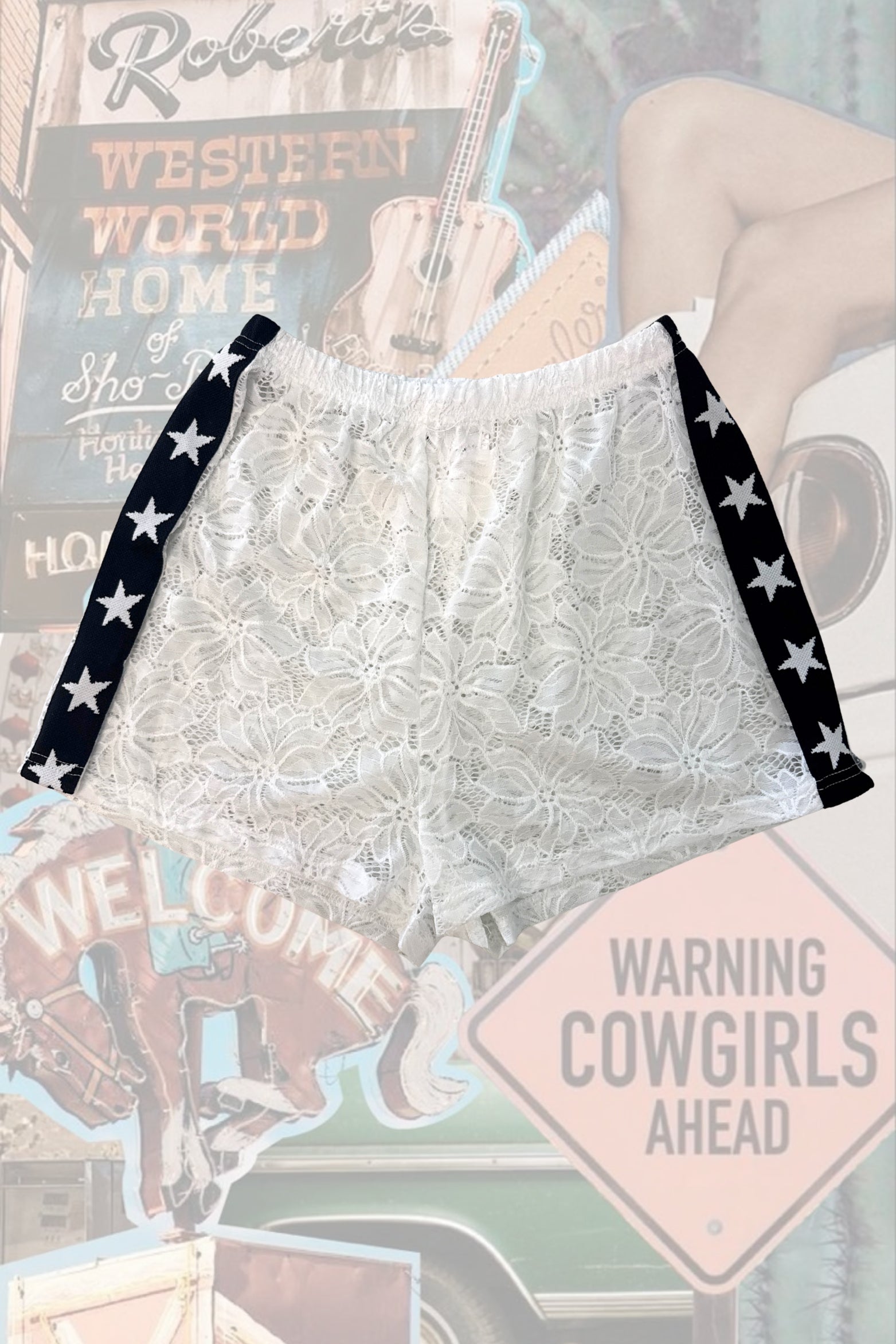 White Lace Star Shorts