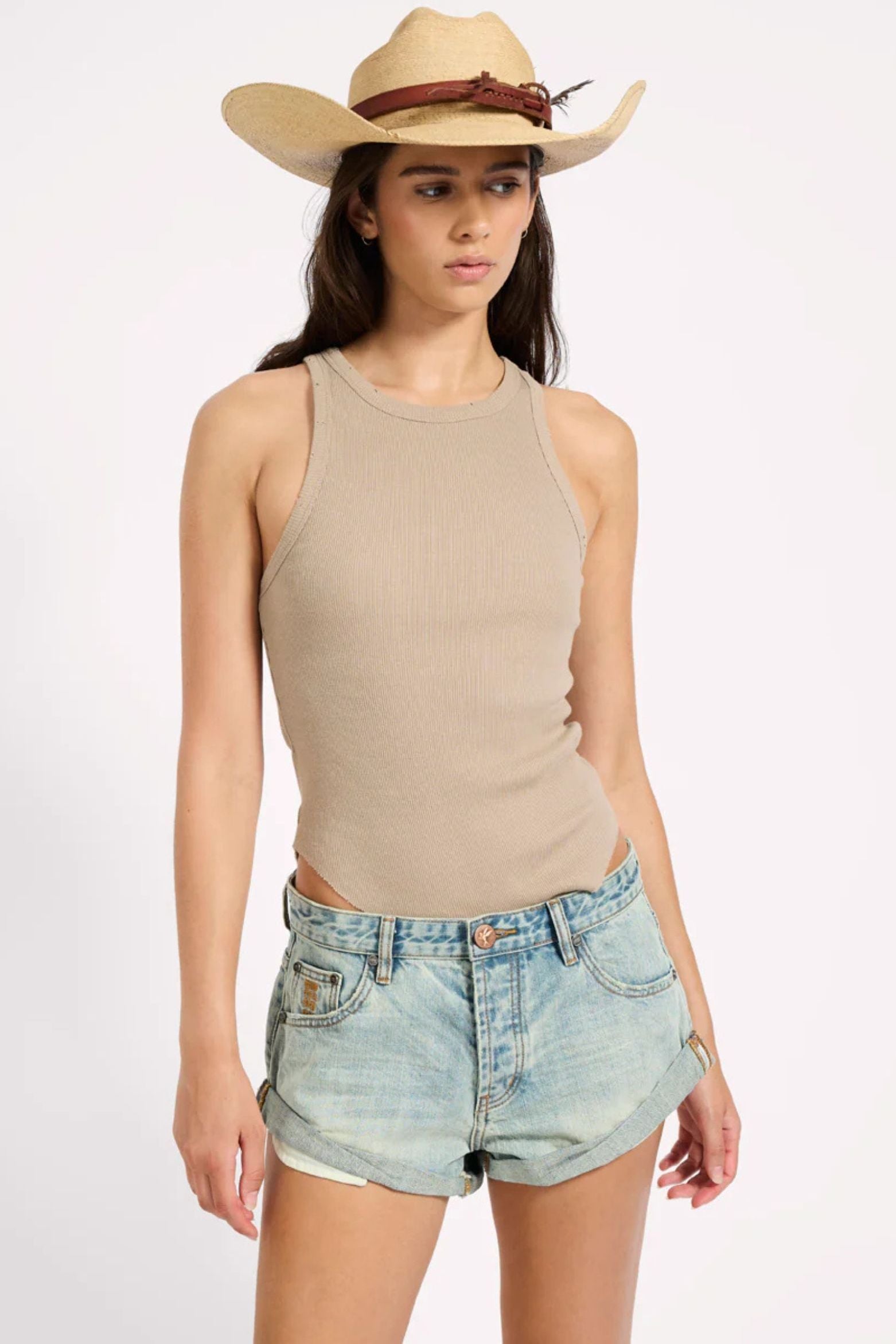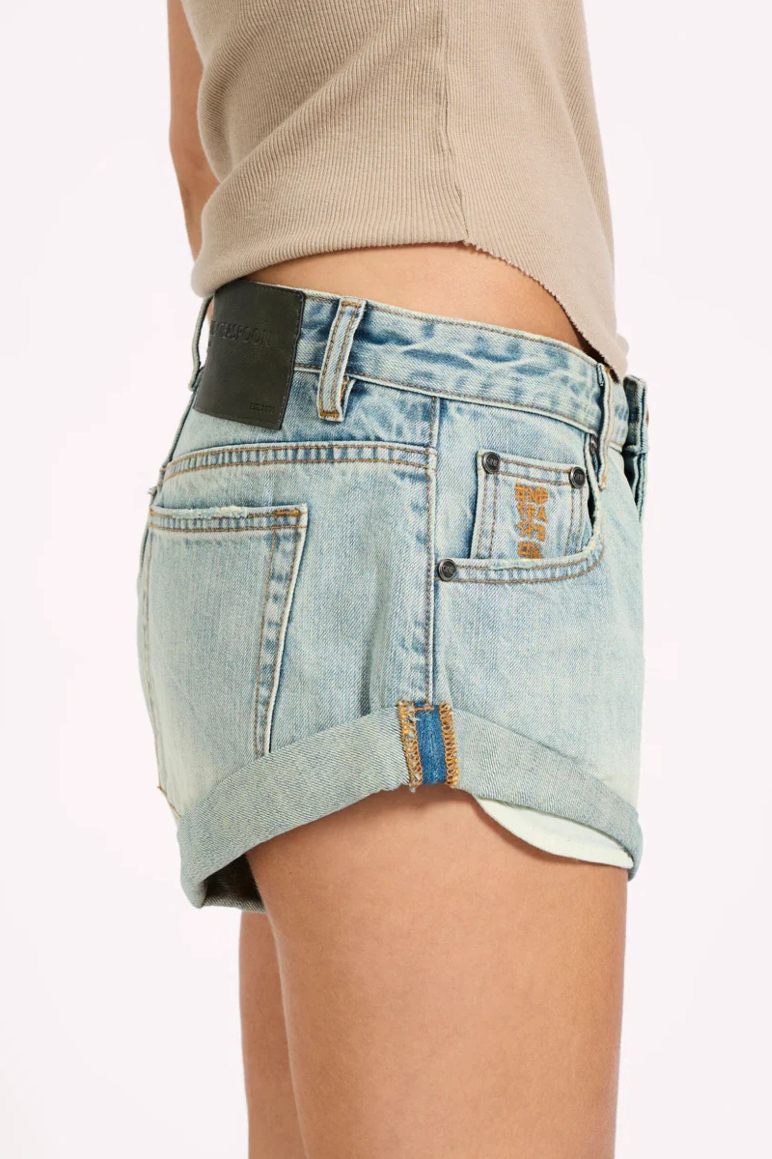 Sun-faded and effortlessly iconic. The SUNKISSED BLUE BANDITS LOW WAIST DENIM SHORTS are the ultimate low-slung classic — slouchy through the hips with an easy, relaxed fit and our signature twisted rolled hem. Finished with oversized patch pockets and the bower bird button for that authentic Bandit edge.