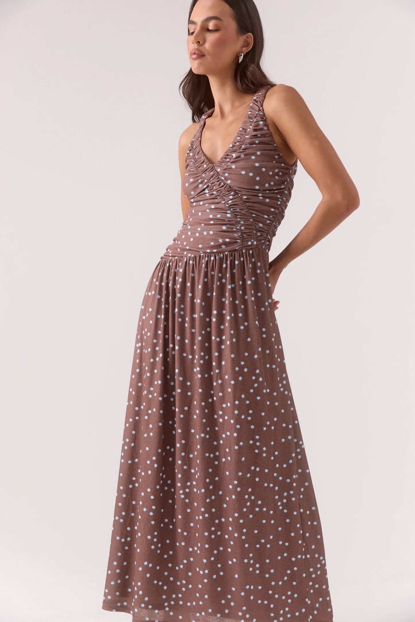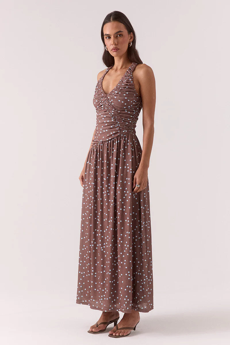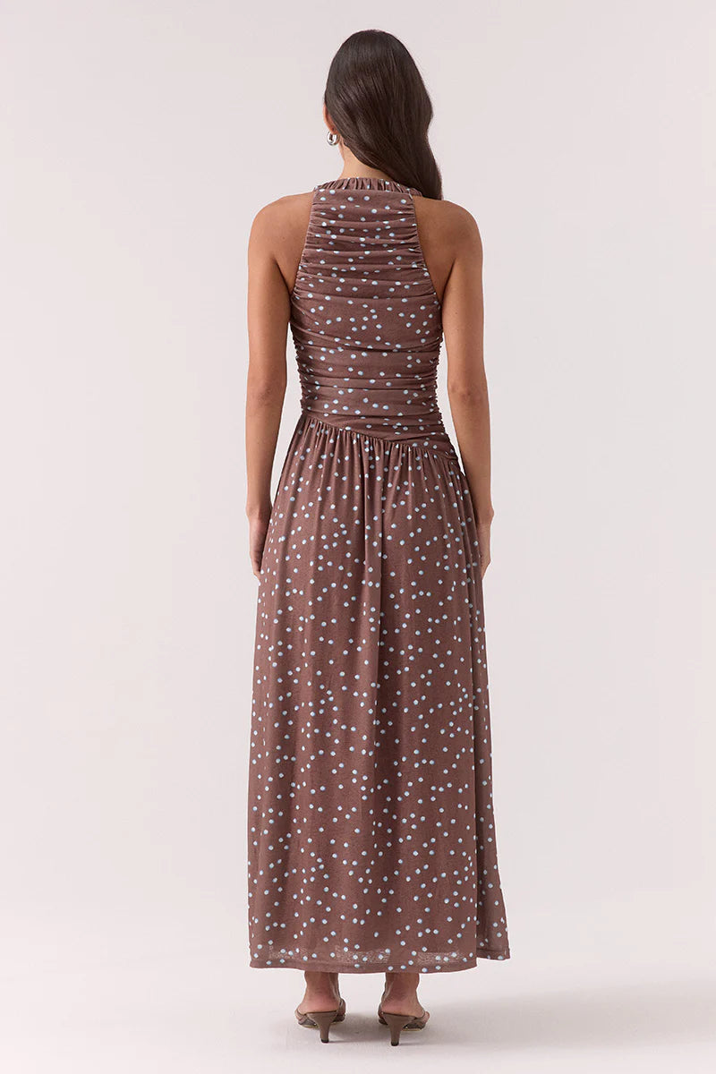 DELILAH MAXI DRESS MOCHA POLKA DOT