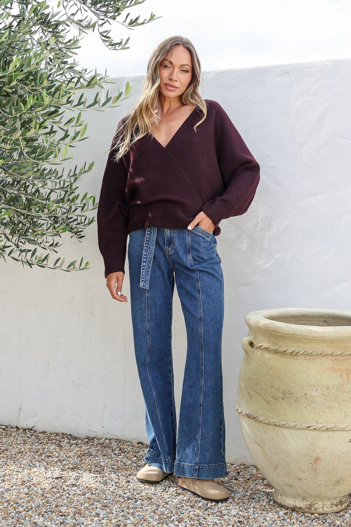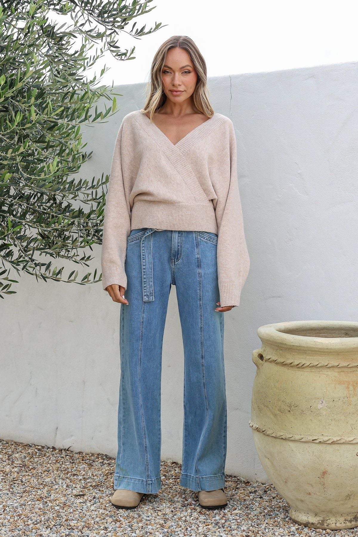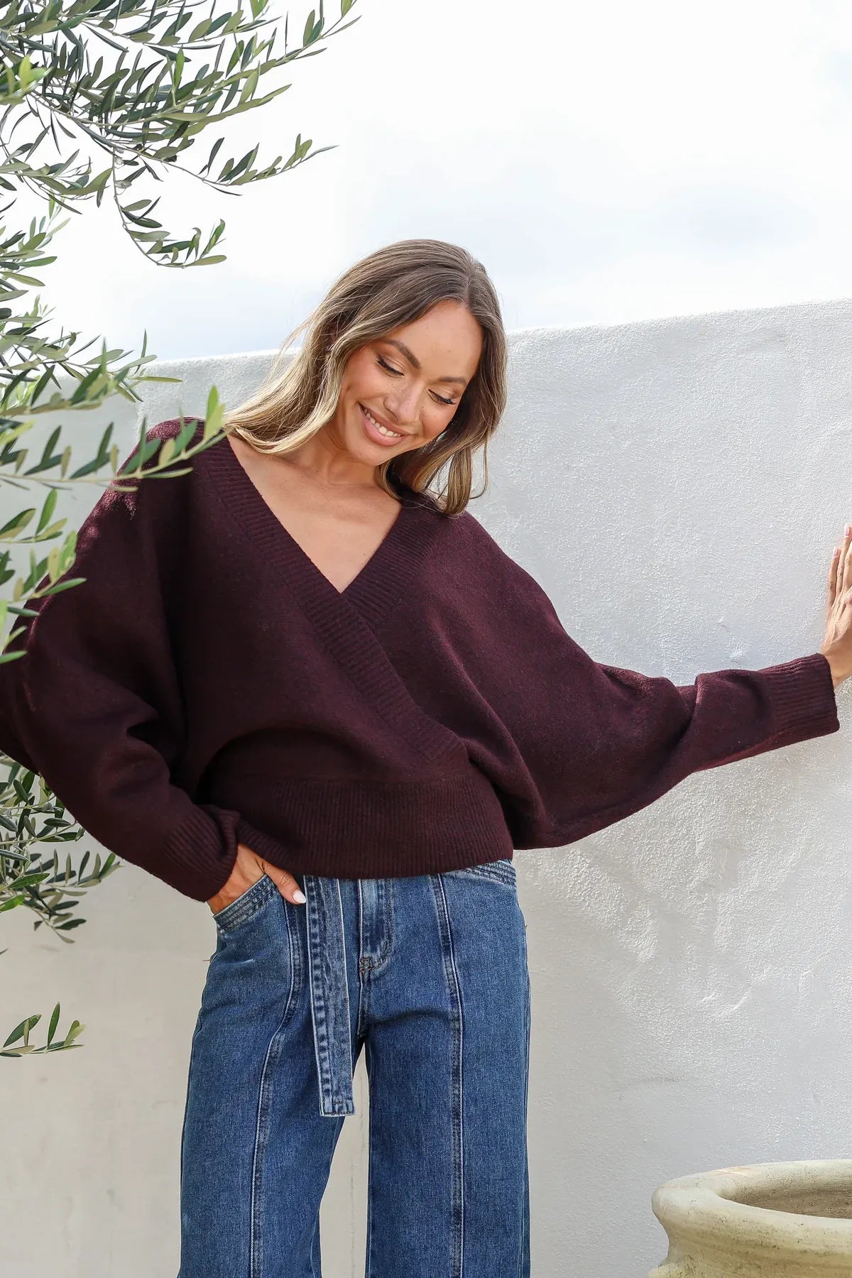 Effortless comfort meets elevated style in our Wrap Front Knit. Designed with a flattering cross-over neckline and relaxed silhouette, this knit drapes beautifully while offering a soft, cosy feel.