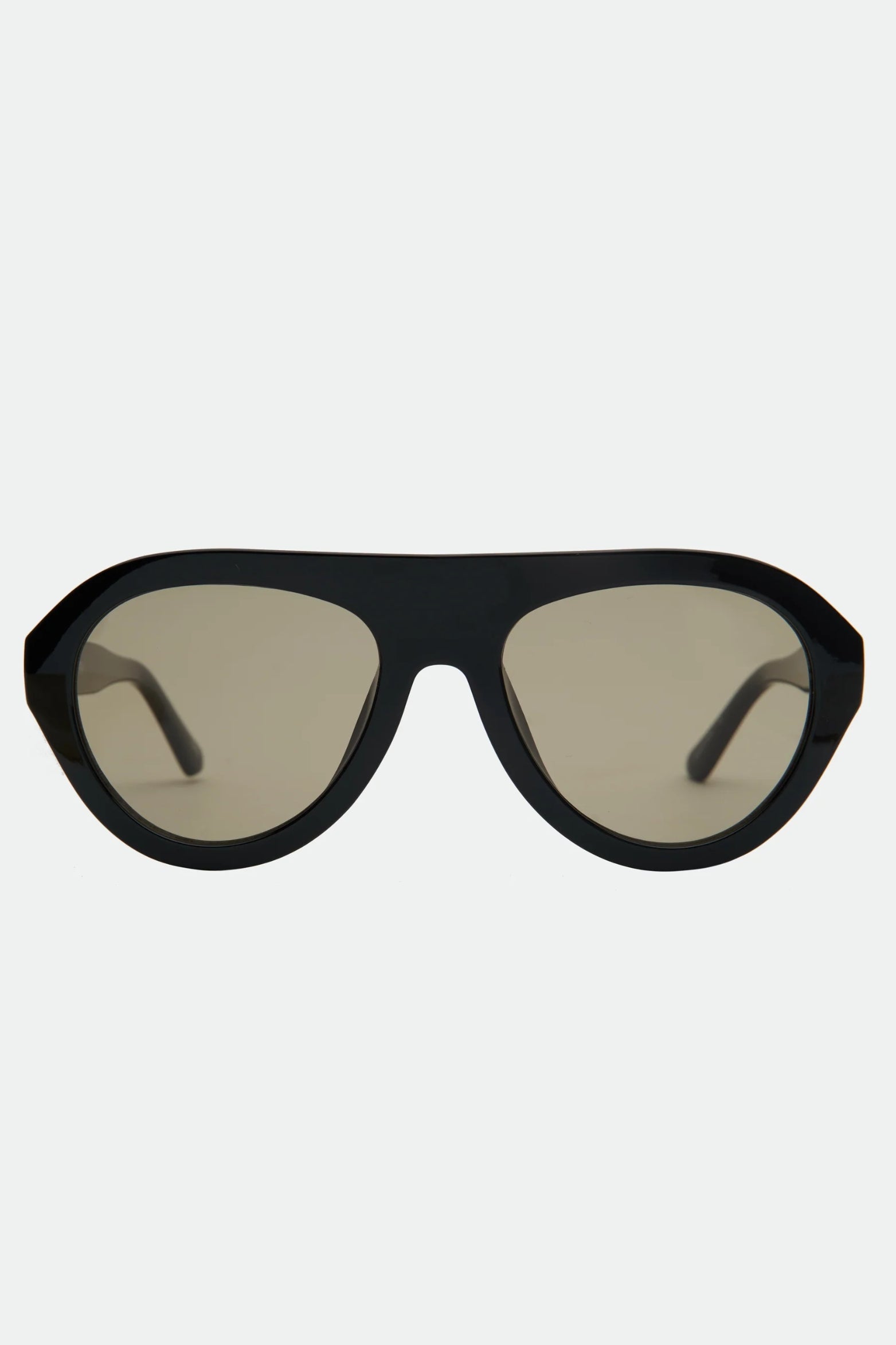 oversized aviator sunglasses with a sleek black frame and deep green tinted lenses. This elevated take on the classic aviator fuses sharp lines with bold proportions, delivering a statement look with timeless appeal. The dark green lenses offer a subtle pop of color while keeping the palette chic and versatile.