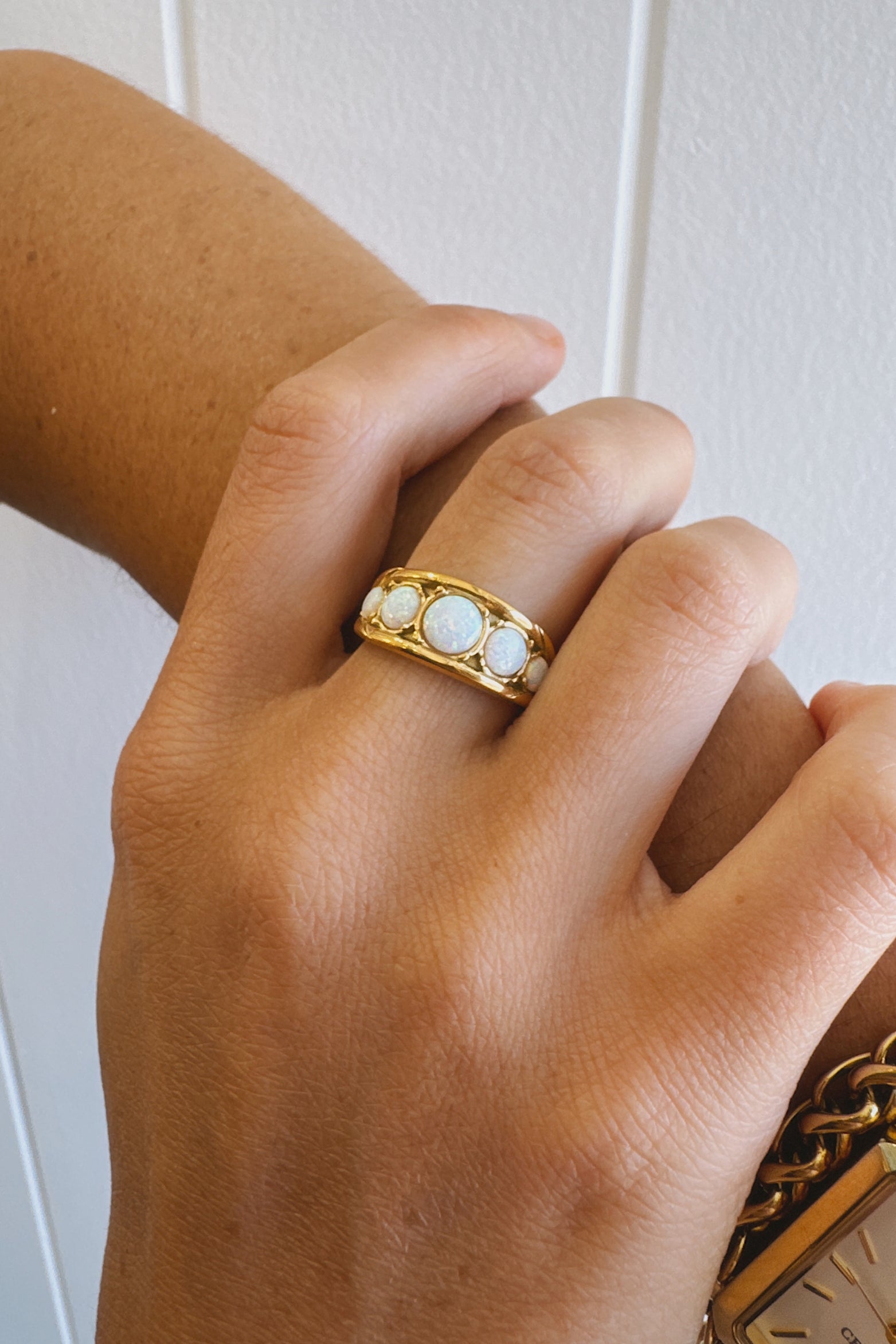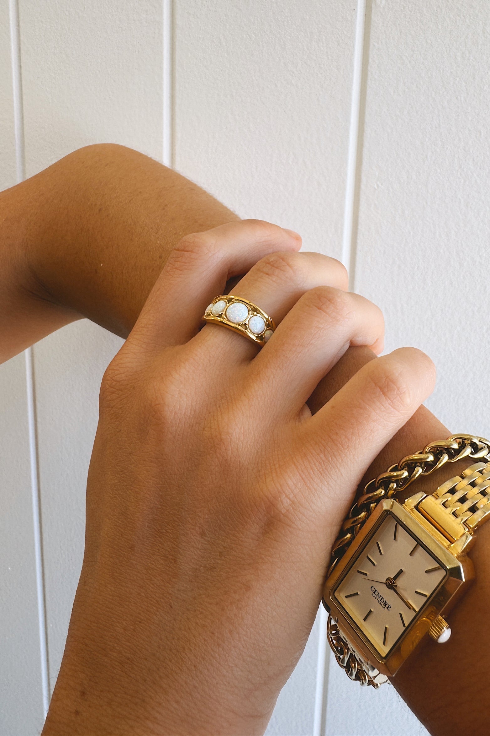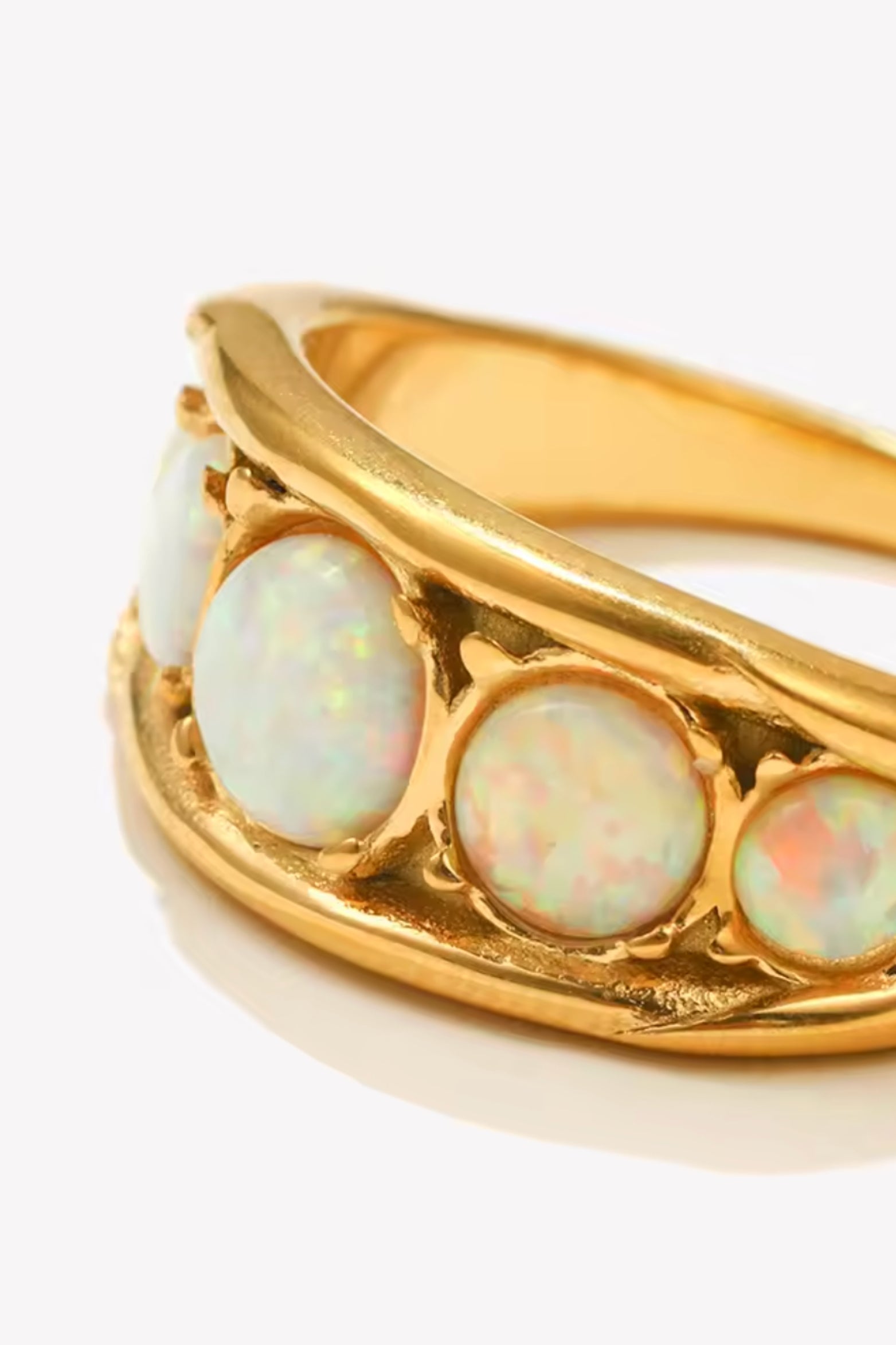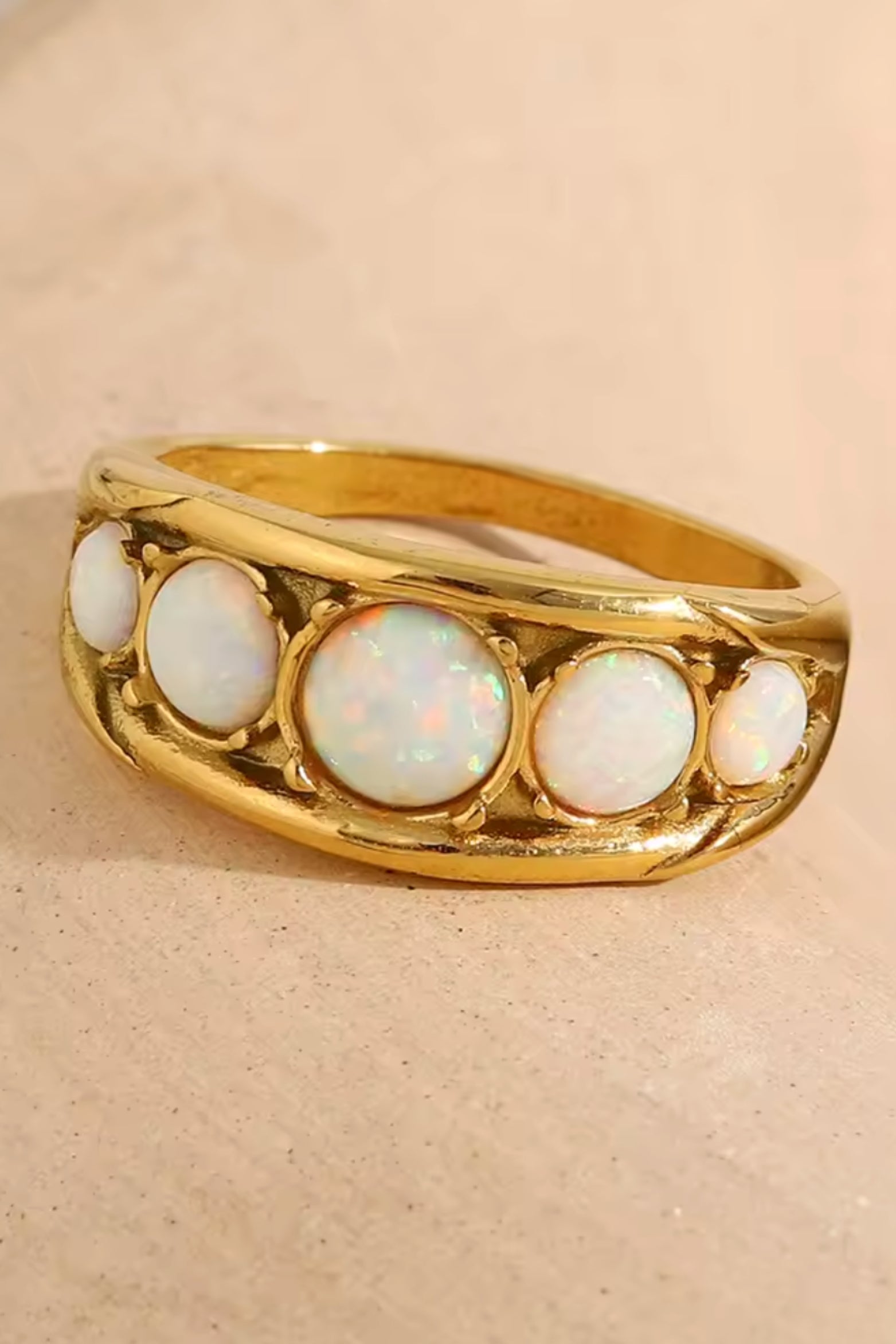 Elegant Luxury Round Opal Stone with Stainless Steel PVD Plating.