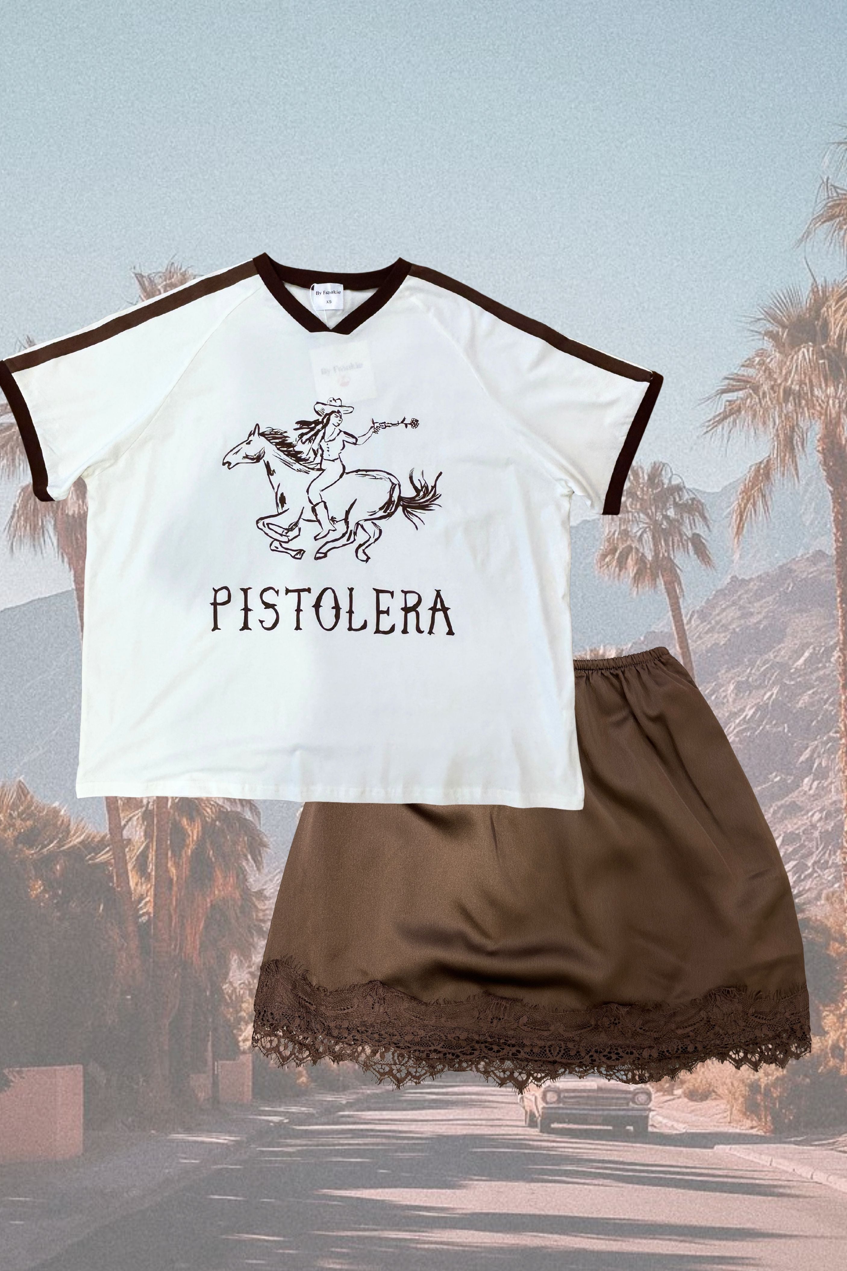 Pair with the By Frankie Brown Lace Mini Skirt to complete the fit