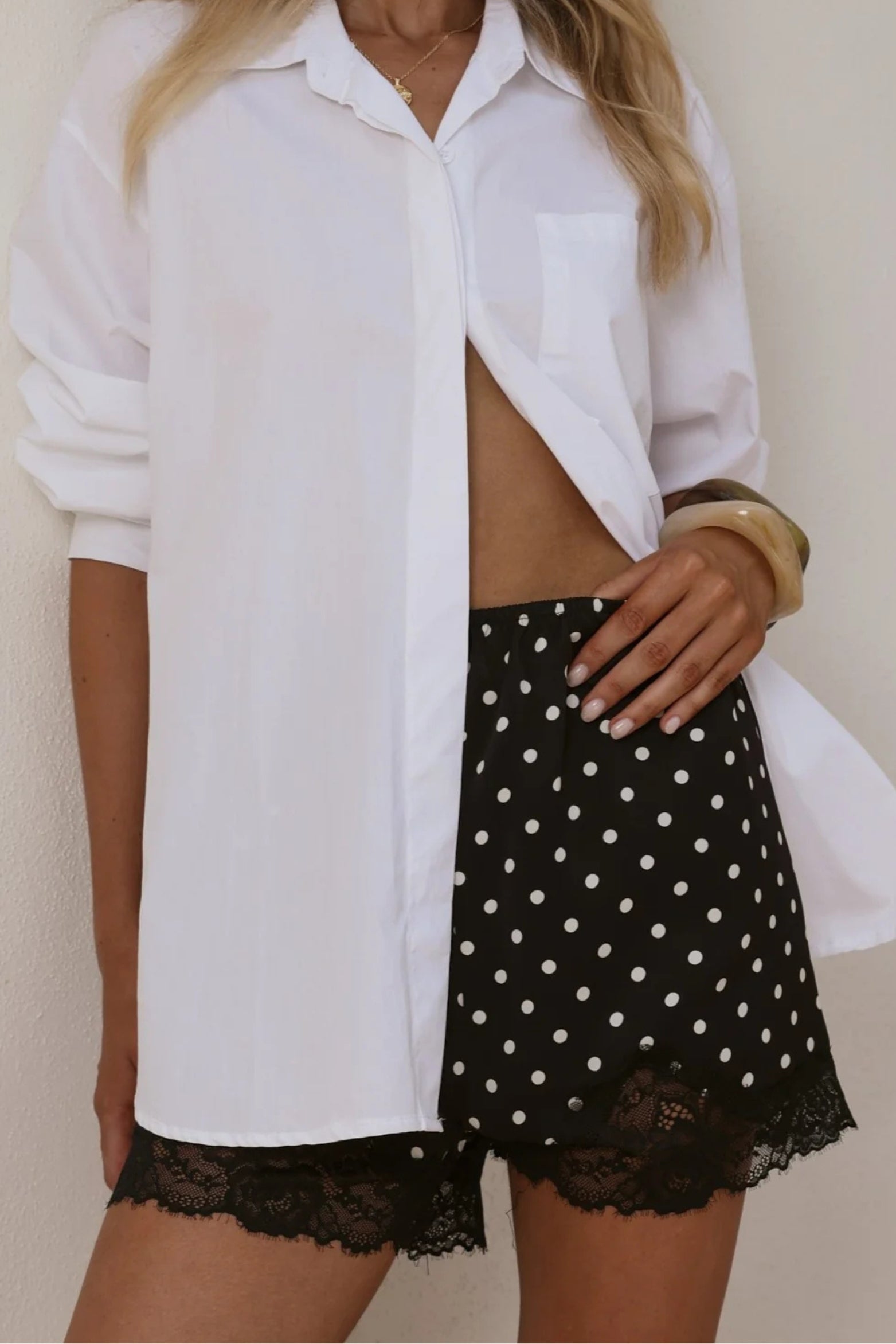 • Polka dot lace trim shorts