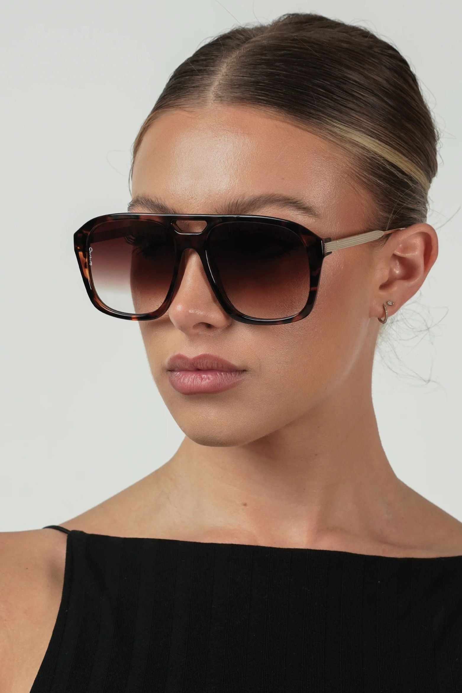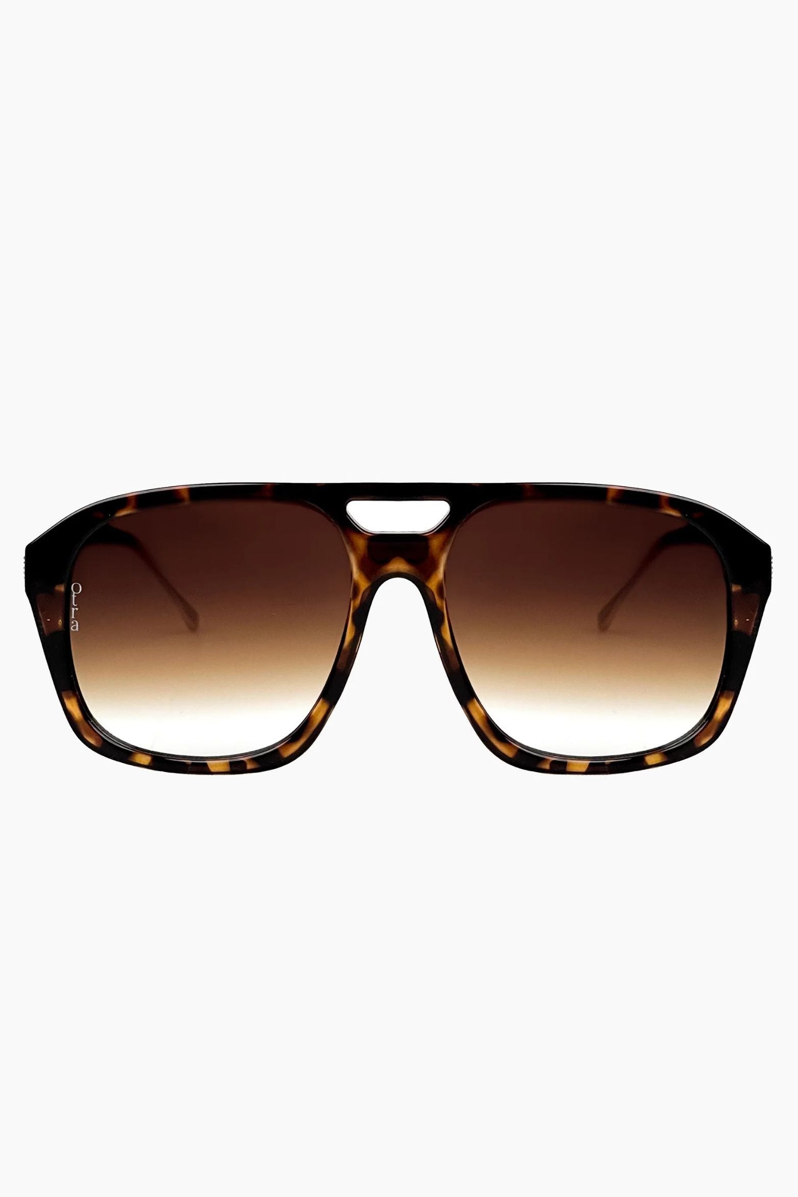 Oversized rounded sunglasses in rich tortoiseshell, paired with brown gradient lenses that add warmth and dimension. A soft, sculptural silhouette.