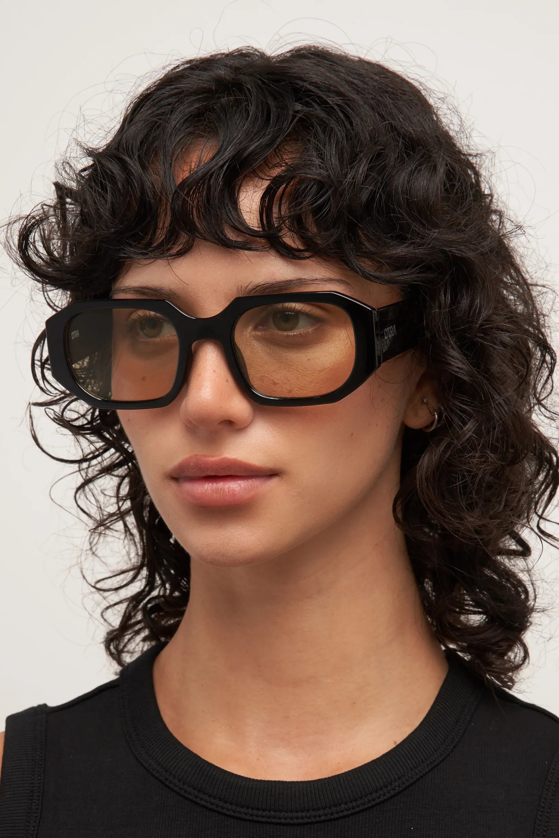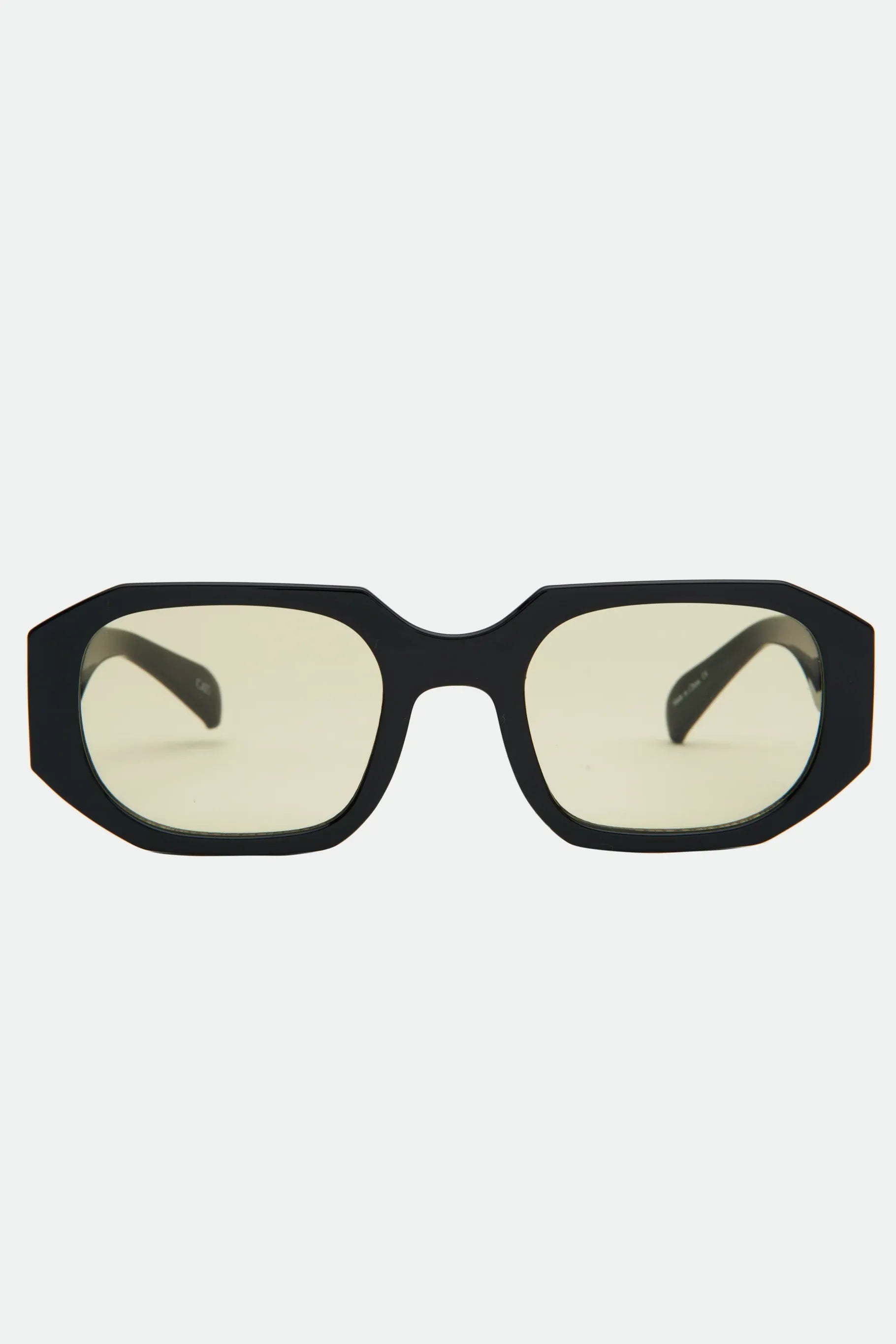 Bold and sculptural, VERA is our statement silhouette made to turn heads. With oversized geometric frames and olive-tinted lenses, this design delivers retro charm with a modern edge.