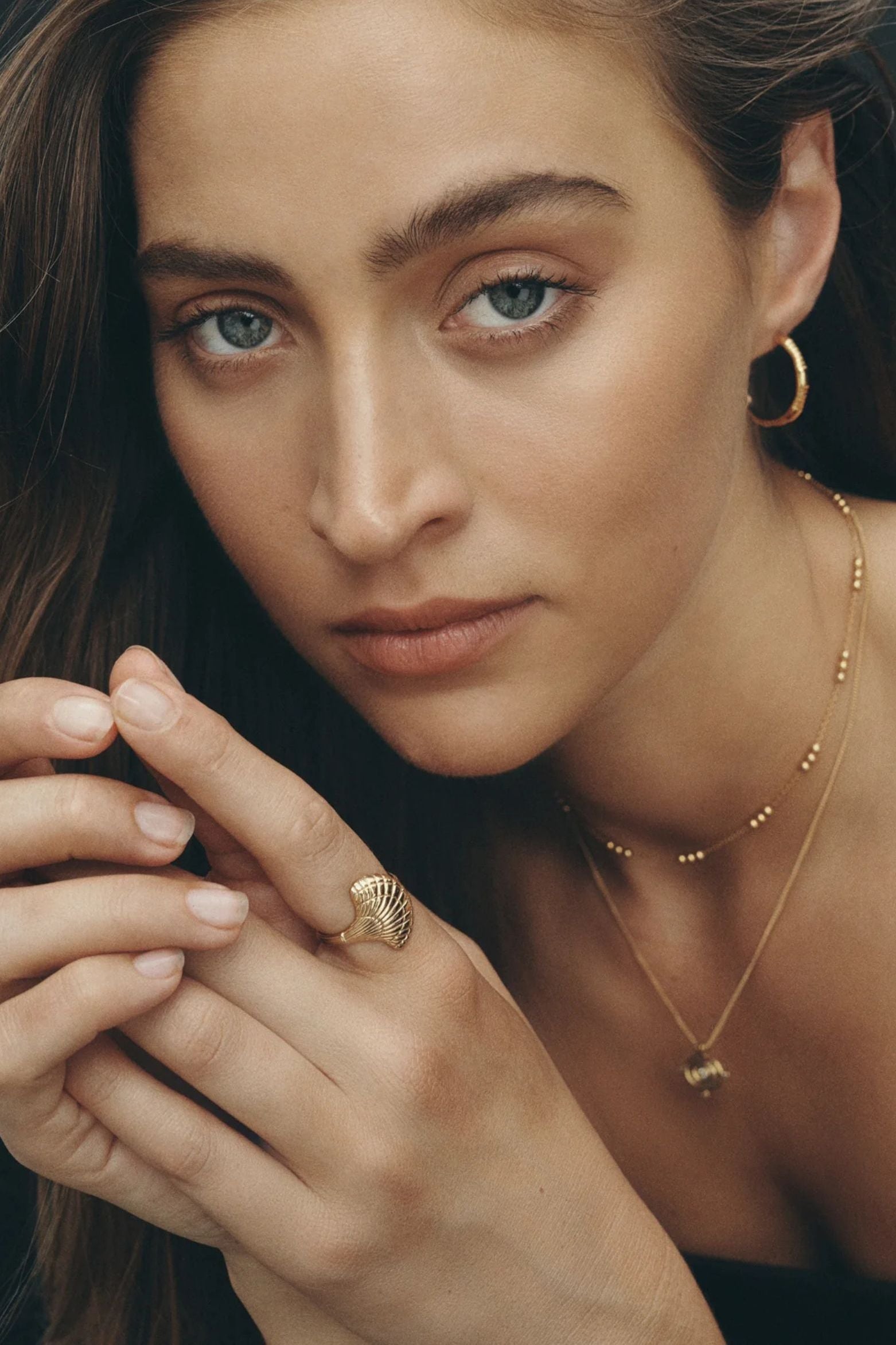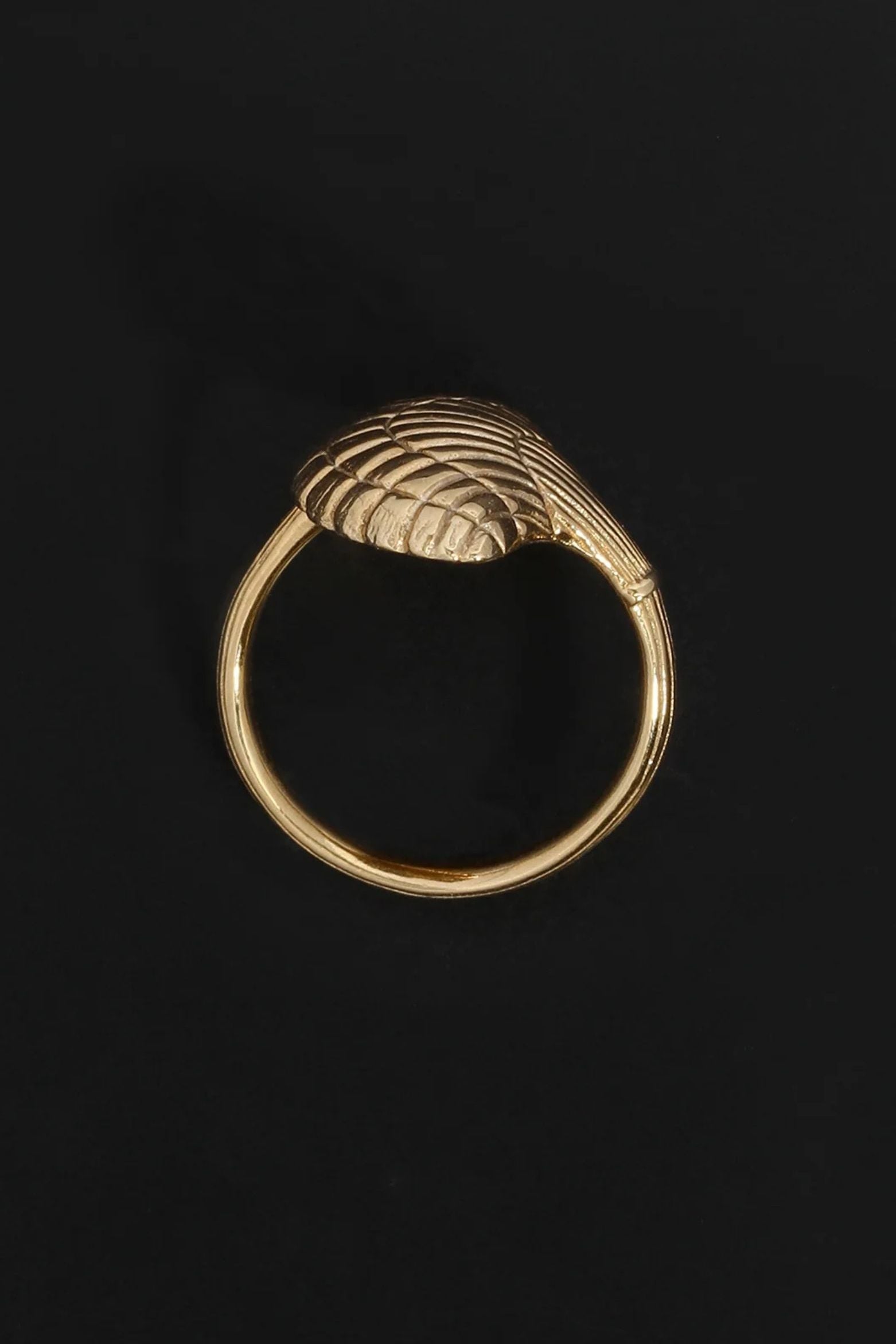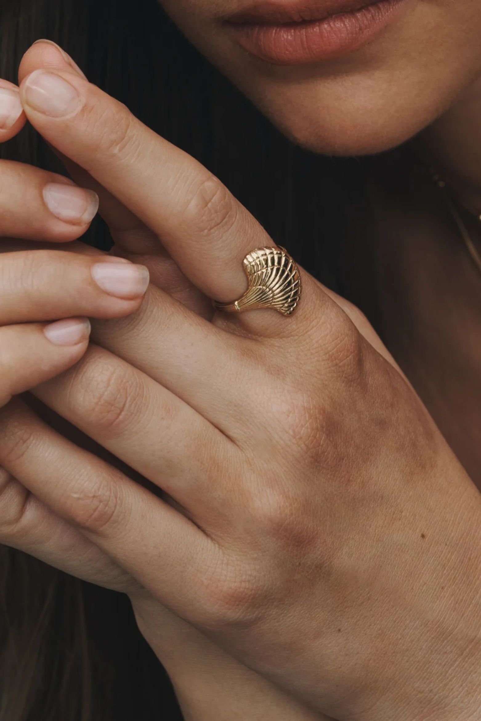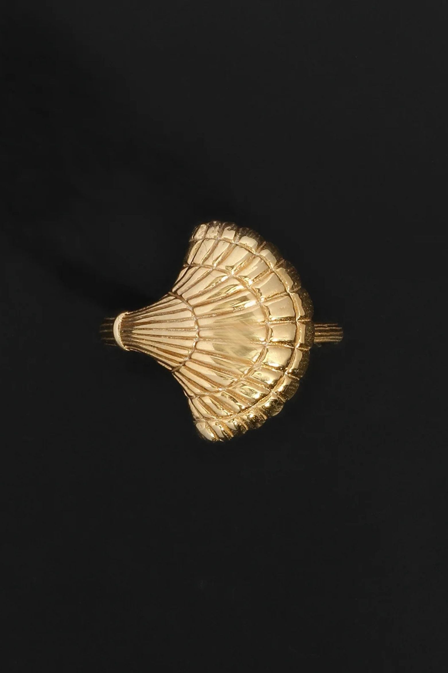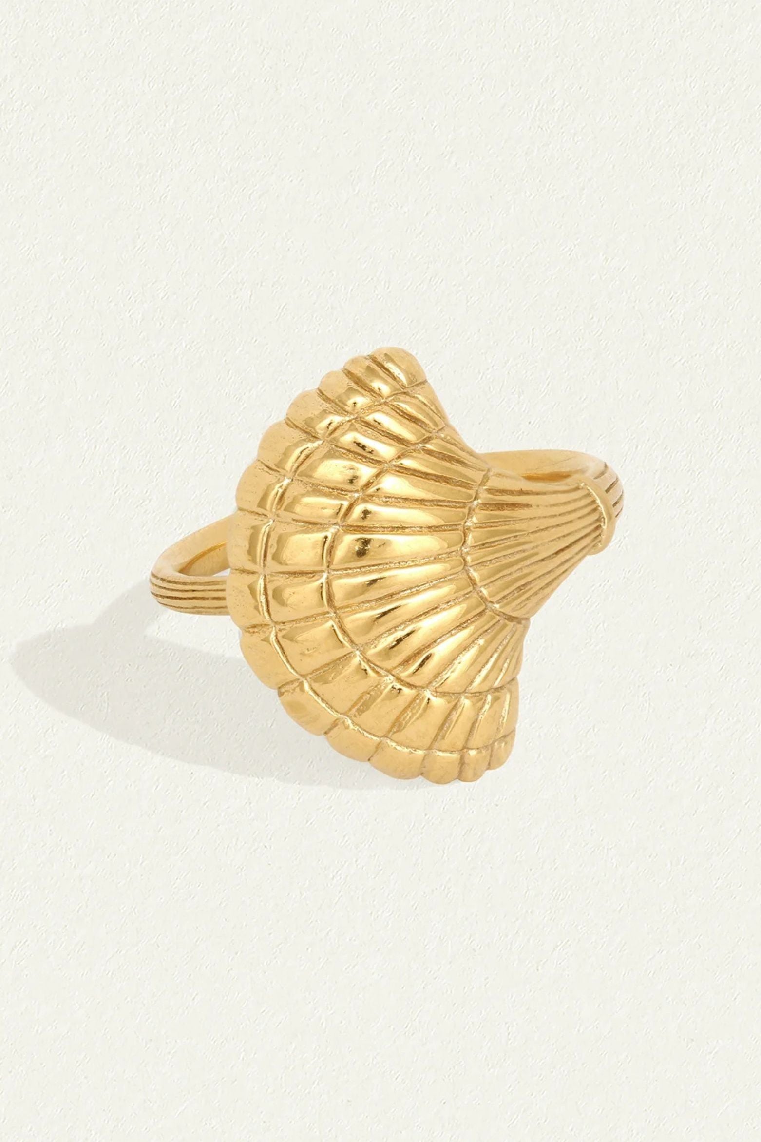 Crafted from 18k gold vermeil, the Eleni Ring is a statement piece featuring a large scallop shell, sacred to Aphrodite.