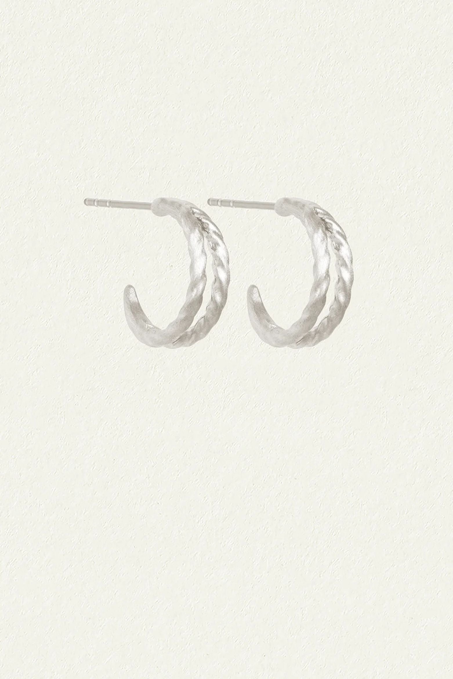 Crafted from softly textured recycled sterling silver, these small hoop earrings catch the light through the movement of their coiled form. Reminiscent of ram’s horns, the Priam Split Hoops symbolise strength, vitality, and renewal.
