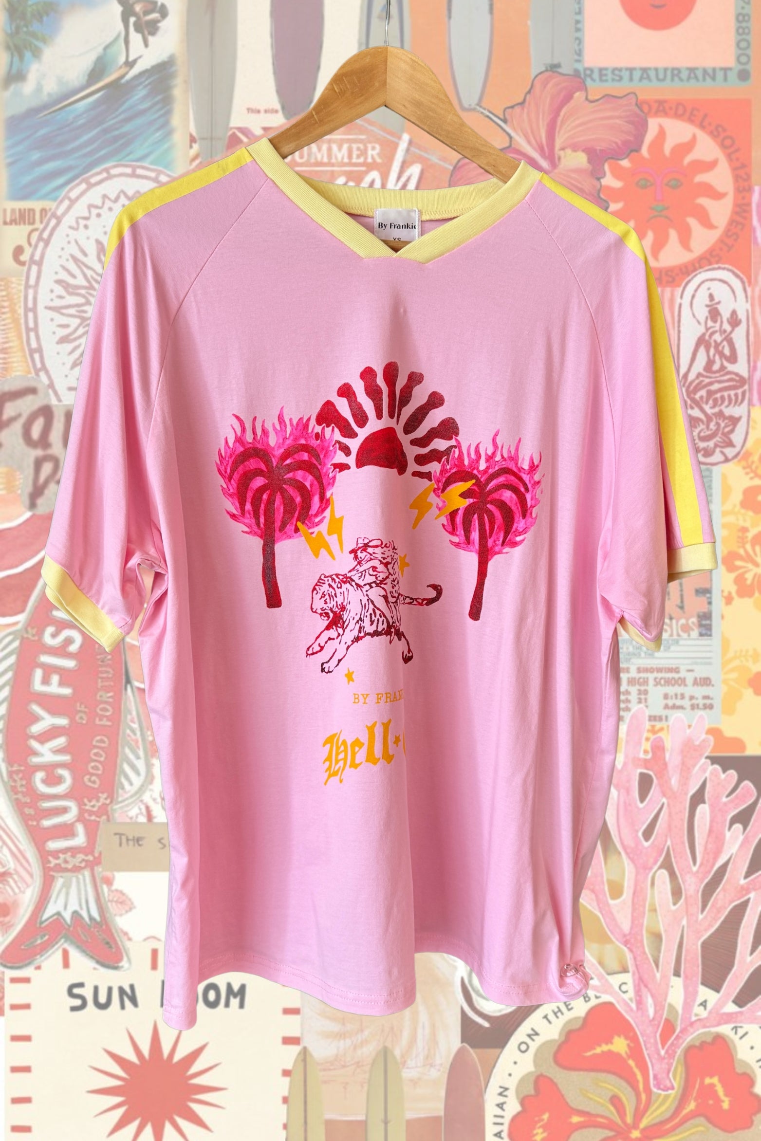 Bring back the retro energy with By Frankie's newest collection of oversized vintage tees 100% Cotton Relaxed, vintage-inspired oversized fit (size down for a more classic silhouette) Contrasting V-neckline Ringer-style sleeves Pair with the By Frankie Green Lace Mini Skirt to complete the fit