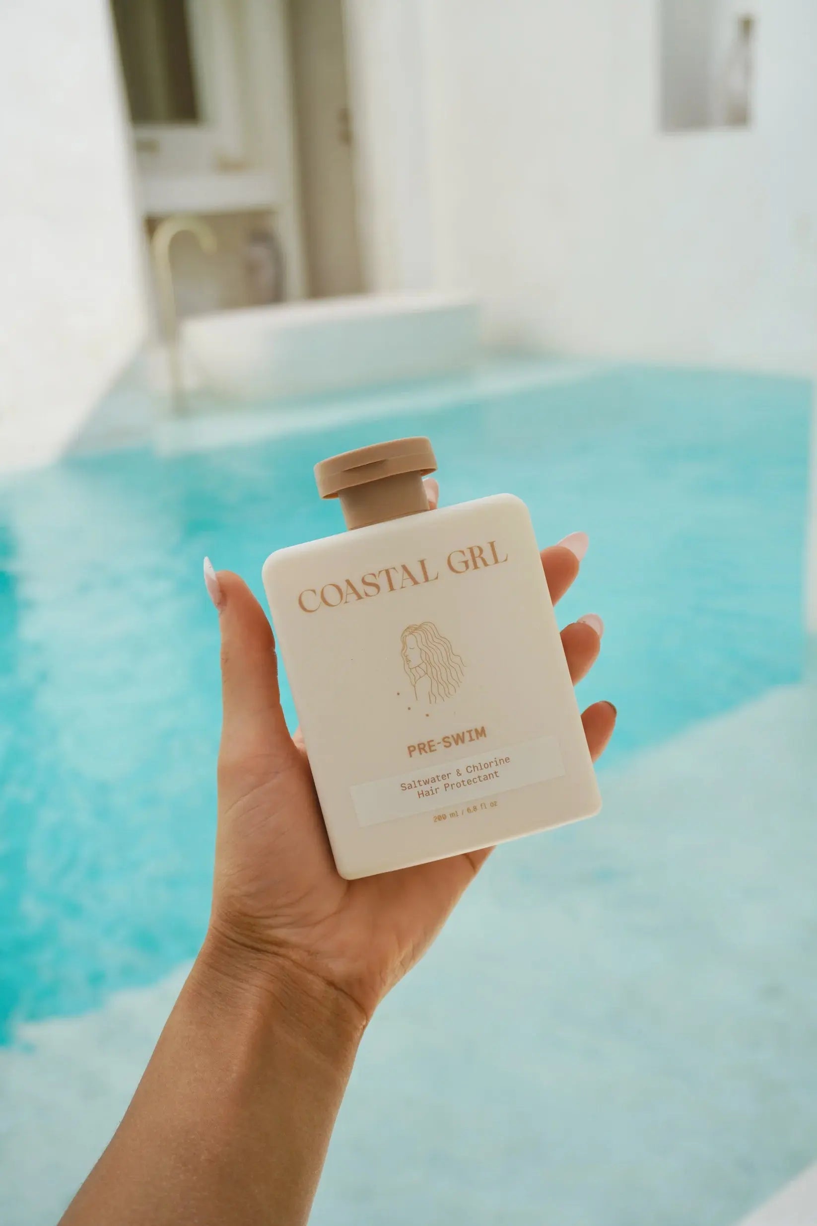 Pre-Swim acts like an invisible swim cap — shielding your hair from the harsh effects of chlorine, saltwater, and UV rays.