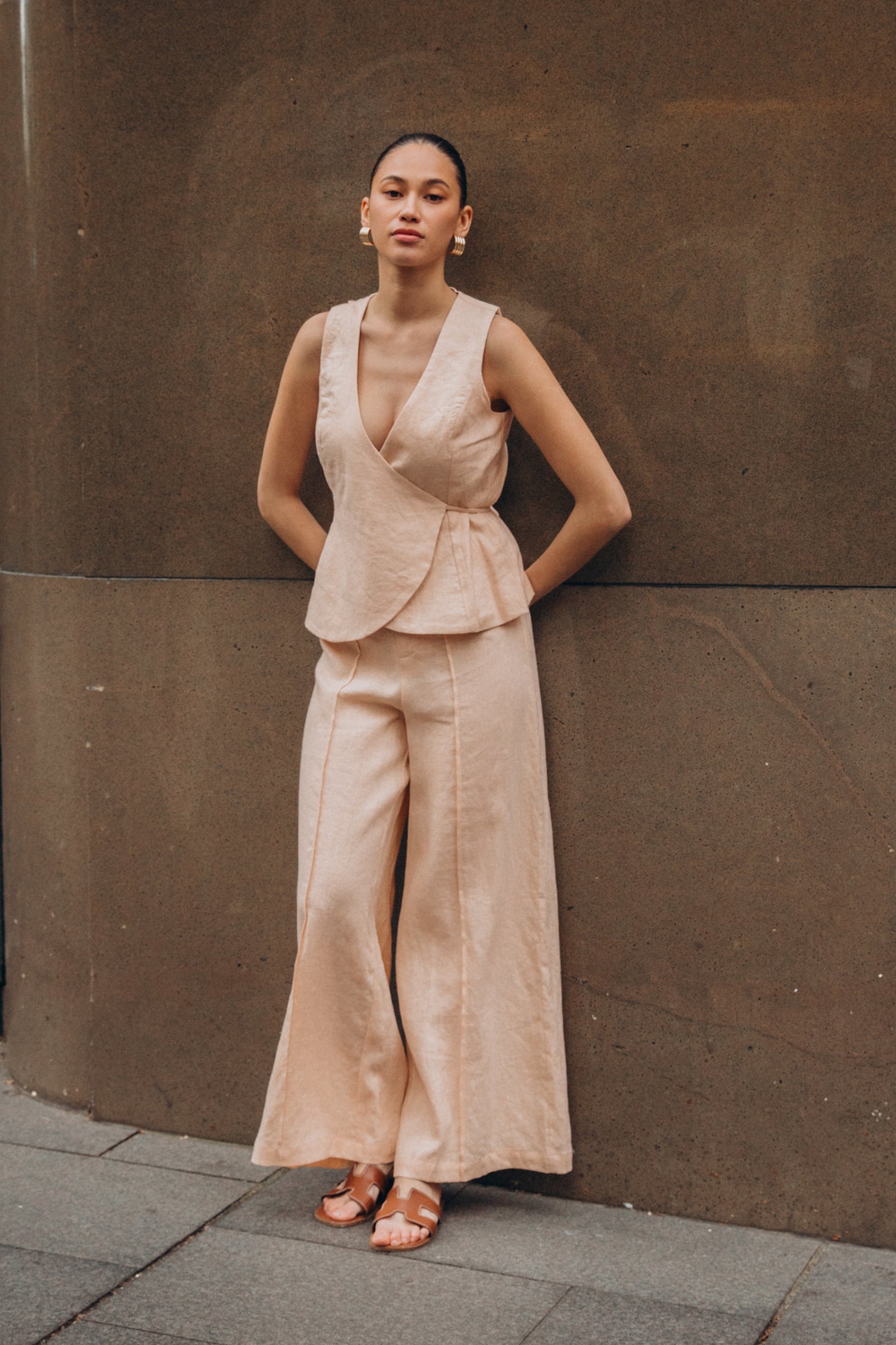 Echo Wrap Linen Vest Cream