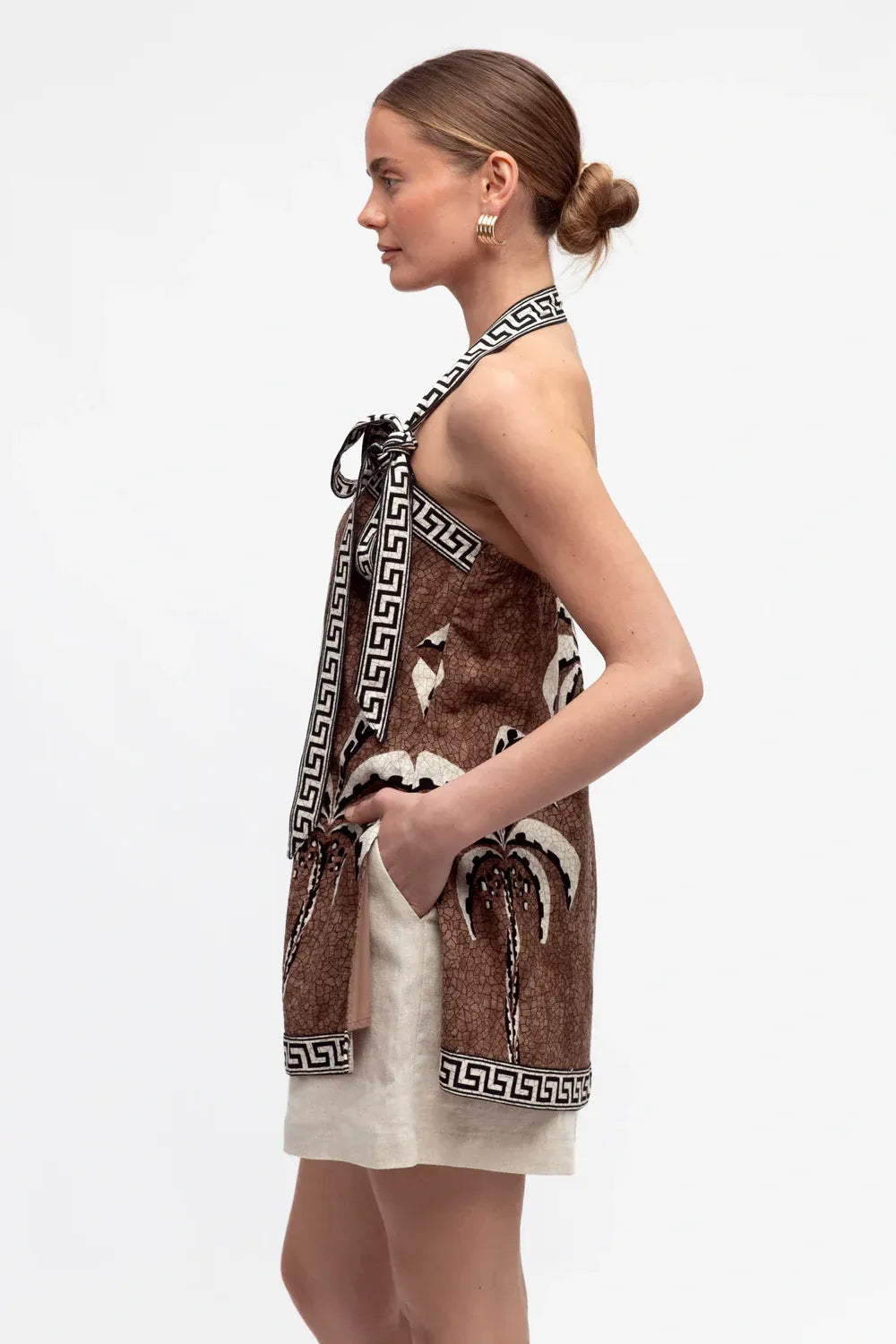 ∙ Halterneck and back tie closure