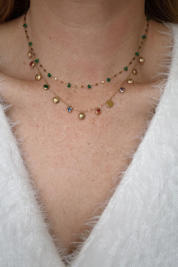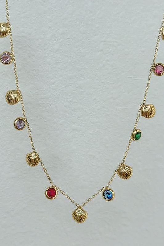 Elevate your everyday elegance with the Sia Necklace, a refined piece crafted from premium stainless steel and adorned with sparkling cubic zirconia accents. Finished in luxurious 18k gold plating, this minimalist necklace features a delicate shell-inspired charm that captures light beautifully. The adjustable 41+5cm length ensures a perfect fit for any occasion, making it an essential addition to your sophisticated jewelry collection.